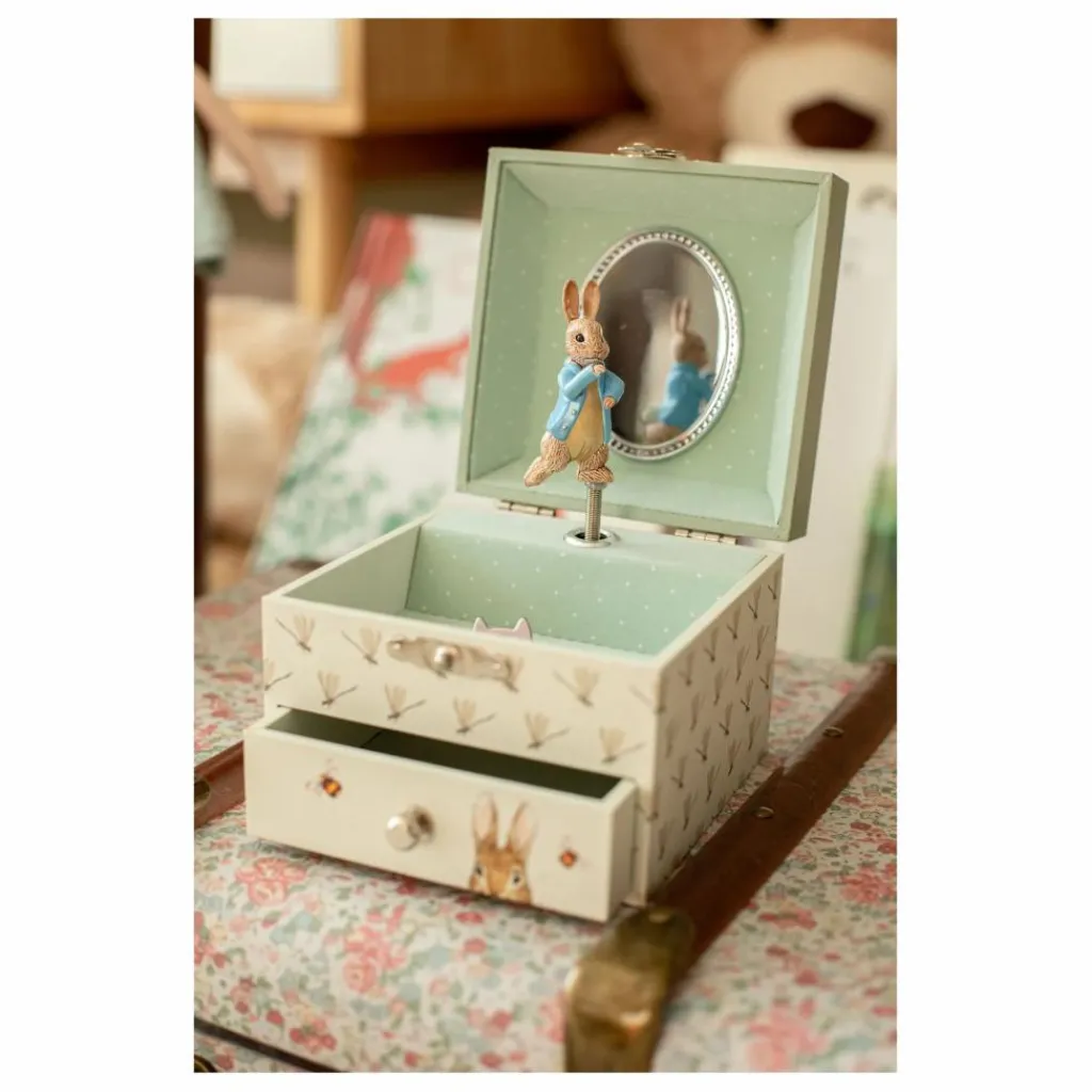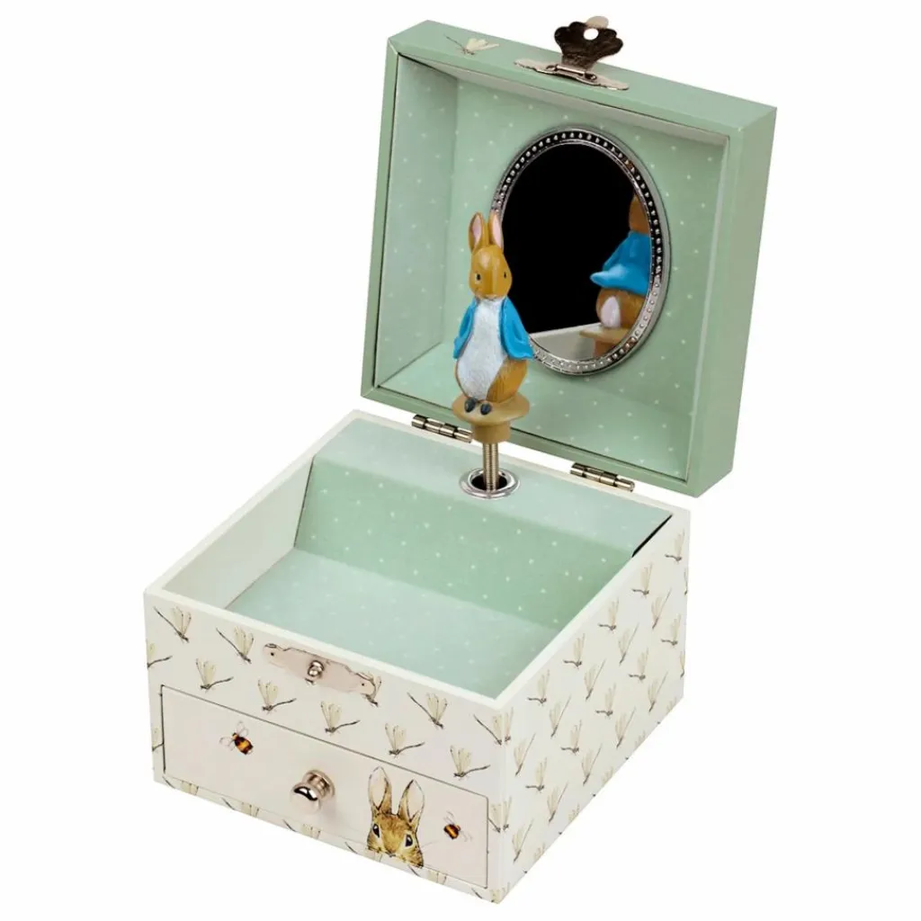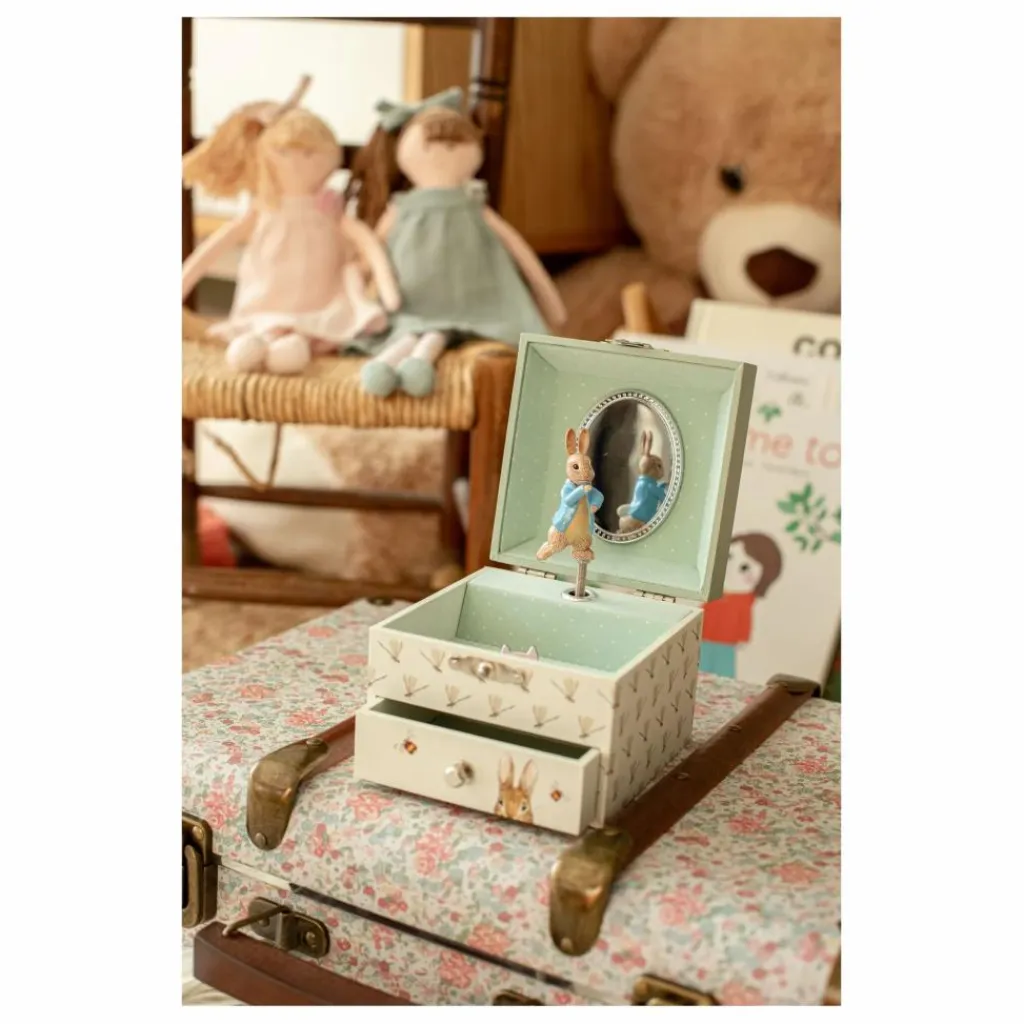 - MAGIQUE : Actionnez la manivelle et la figurine s’anime comme par magie au son de la musique! Possibilité de ranger des « trésors » dans le tiroir! IDÉAL DÈS LA NAISSANCE : Ce coffret musical sera du plus bel effet pour décorer la chambre de l’enfant. Un cadeau de naissance original et plein de poésie! EVEILLEZ VOTRE ENFANT : initiez vos tout petits à la musique classique avec sa douce berceuse. INTEMPOREL : Une boîte à musique est un objet intemporel que l’on garde précieusement. Sa mélodie et les souvenirs qui l’accompagnent resteront longtemps gravés dans la mémoire de l’enfant. UNE MARQUE FÉÉRIQUE : Plongez dans l’univers magique de TROUSSELIER avec leurs boites à musique, les veilleuses, doudous, mobiles musicaux & autres jouets qui berceront l’enfance de vos tout petits. TROUSSELIER – Pierre Lapin – Peter Rabbit© – Boîte à Trésors & Bijoux Musicale – Idéal Cadeau Enfant – Musique Lullaby de Mozart – Colori Vert
