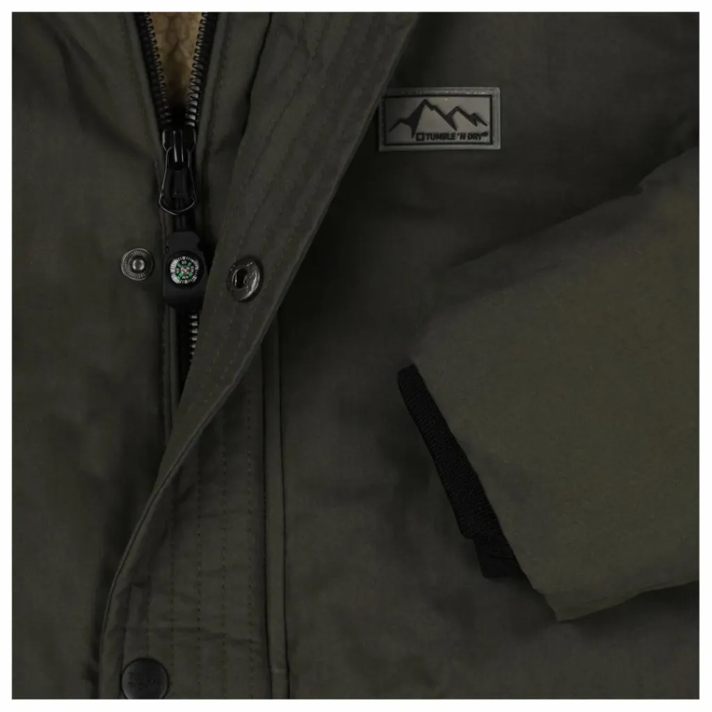 - Ce manteau d’hiver vert foncé de longueur moyenne est doté d’une fermeture à glissière pratique, d’une capuche et d’une doublure douce en fausse fourrure. Il comporte également des poches à rabat avec fermeture à bouton-pression, une poche intérieure avec fermeture auto-agrippante et des poignets élastiques. Le manteau d’hiver est fabriqué en polyester recyclé, a un rembourrage en Sorona et une finition bionic eco.