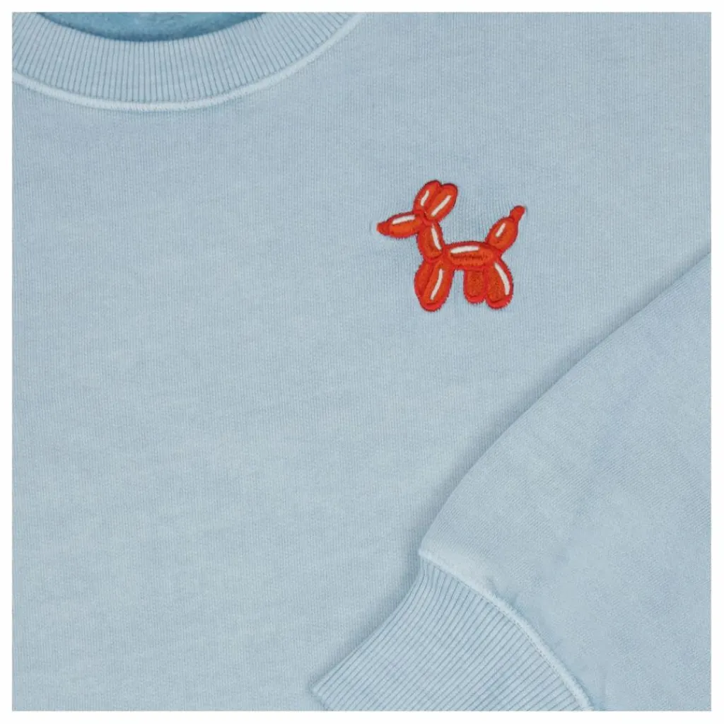 - Ce pull doux et bleu clair est teinté dans la masse, a une coupe surdimensionnée, des poignets côtelés et une broderie sur la poitrine. Le pull est en coton biologique. En raison du lavage spécial, chaque pièce est unique et la couleur du pull peut s’estomper légèrement après un lavage et/ou un port fréquent.