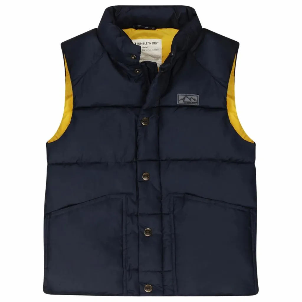 - Réchauffer le corps ! Trop chaud pour une veste mais trop froid pour quitter la maison sans elle ? Nous avons ce qu’il vous faut ! La solution parfaite : un body warmer. Cette variante bleu foncé est fabriquée en polyester recyclé, dotée d’une fermeture à glissière et de boutons-pression, d’un col montant et de deux poches latérales sur le devant.