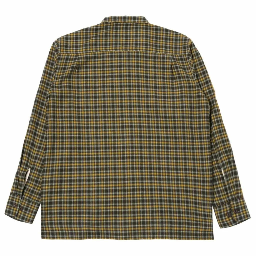 - Chemise ample à col plat, coutures latérales fendues et deux poches à rabat boutonnées. Flanelle brossée à tissage uni. Le poids idéal de la chemise dans un carrelage de couleur terre.