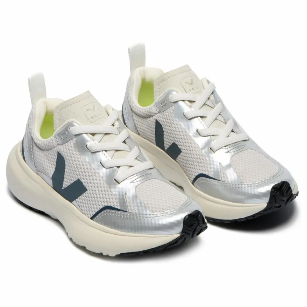 - Dessus : Alveomesh – polyester recyclé (100%) Panneaux : T.P.U. et Vegan suede et Sérigraphie Logo V : T.P.U. Semelle intérieure : Bio-based E.V.A. – canne à sucre (44%), polyester recyclé (35%) (doublure) Semelle intermédiaire : E.V.A. biosourcé – canne à sucre (38%), E.V.A. recyclé (15%) Semelle extérieure : Caoutchouc amazonien (31%), silice minérale (31%), caoutchouc synthétique (19%) Doublure : Polyester recyclé (100%) Boucle arrière : Polyester recyclé (100%) Lacets : Lacets élastiques – polyester recyclé (60%) & caoutchouc synthétique (40%)