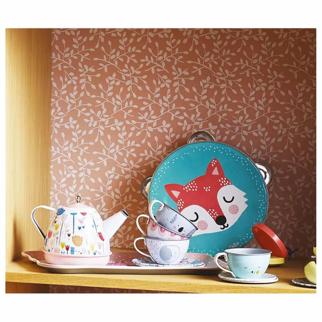 - • Tous les accessoires sont en métal imprimé.• Une théière musicale dotée d’une clé pour remonter le mécanisme de la boîte à musique.• Quatre assiettes.• Quatre tasses avec soucoupes.• Un plateau de service.• Une valisette de rangement en carton.