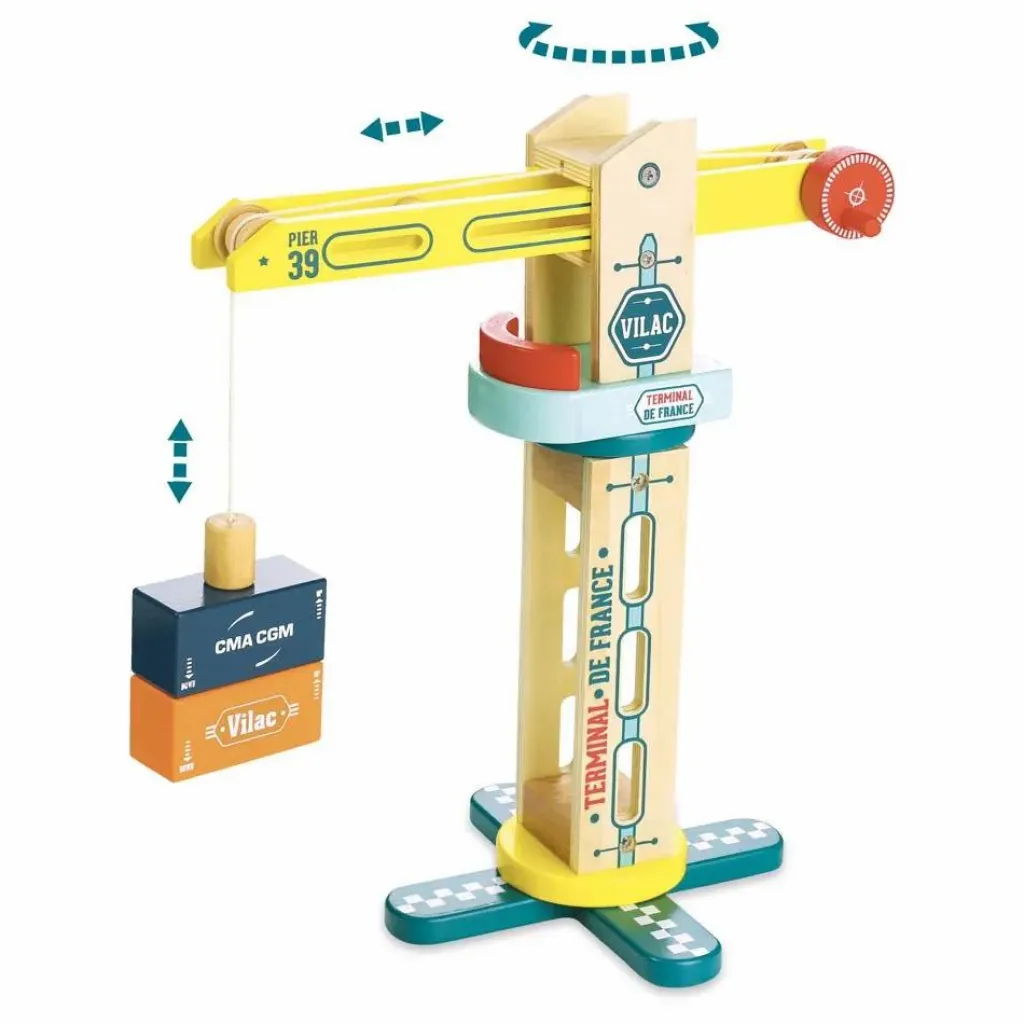 Cette grue de docker rotative est dotée d’une manivelle et d’un embout magnétique pour faciliter le déplacement du container.