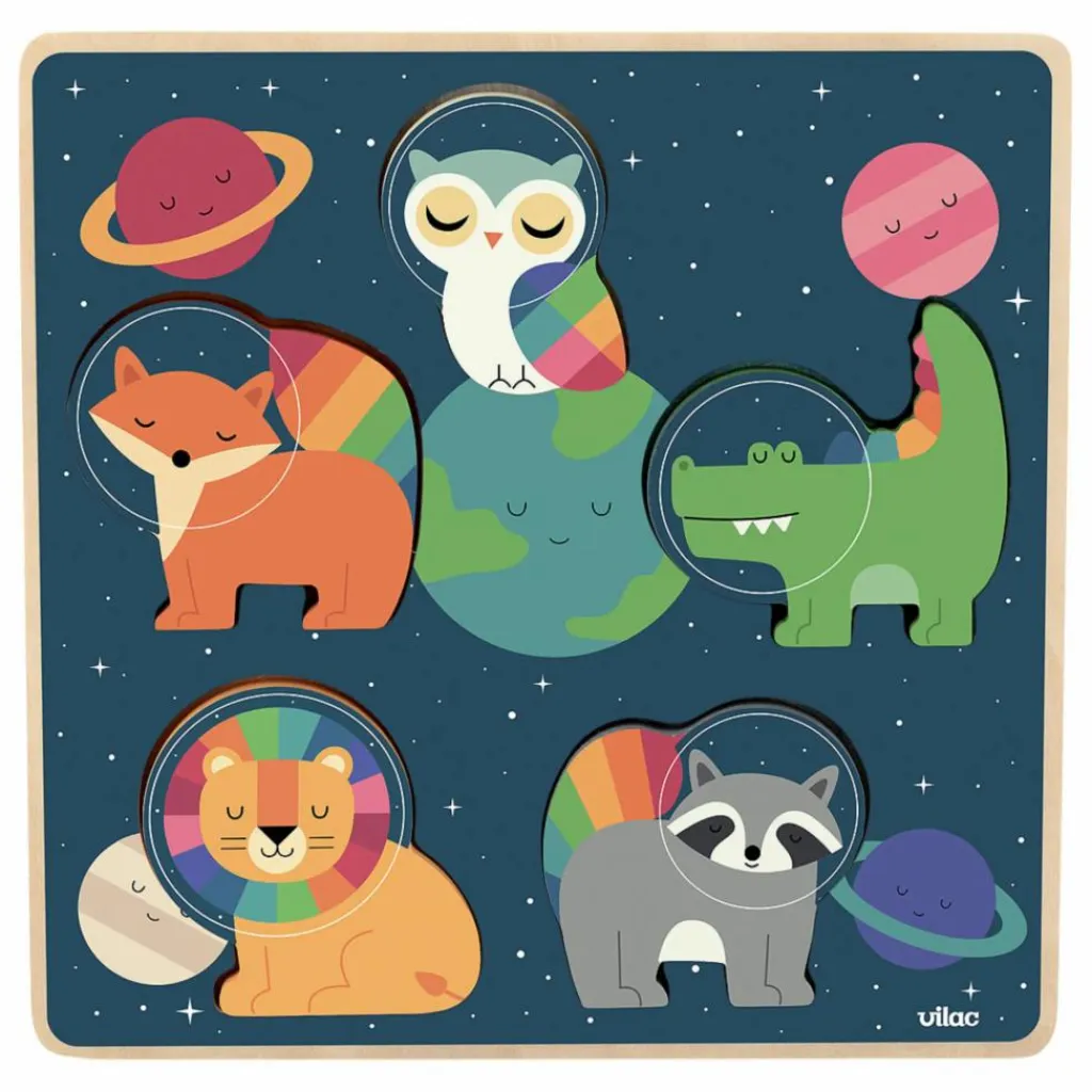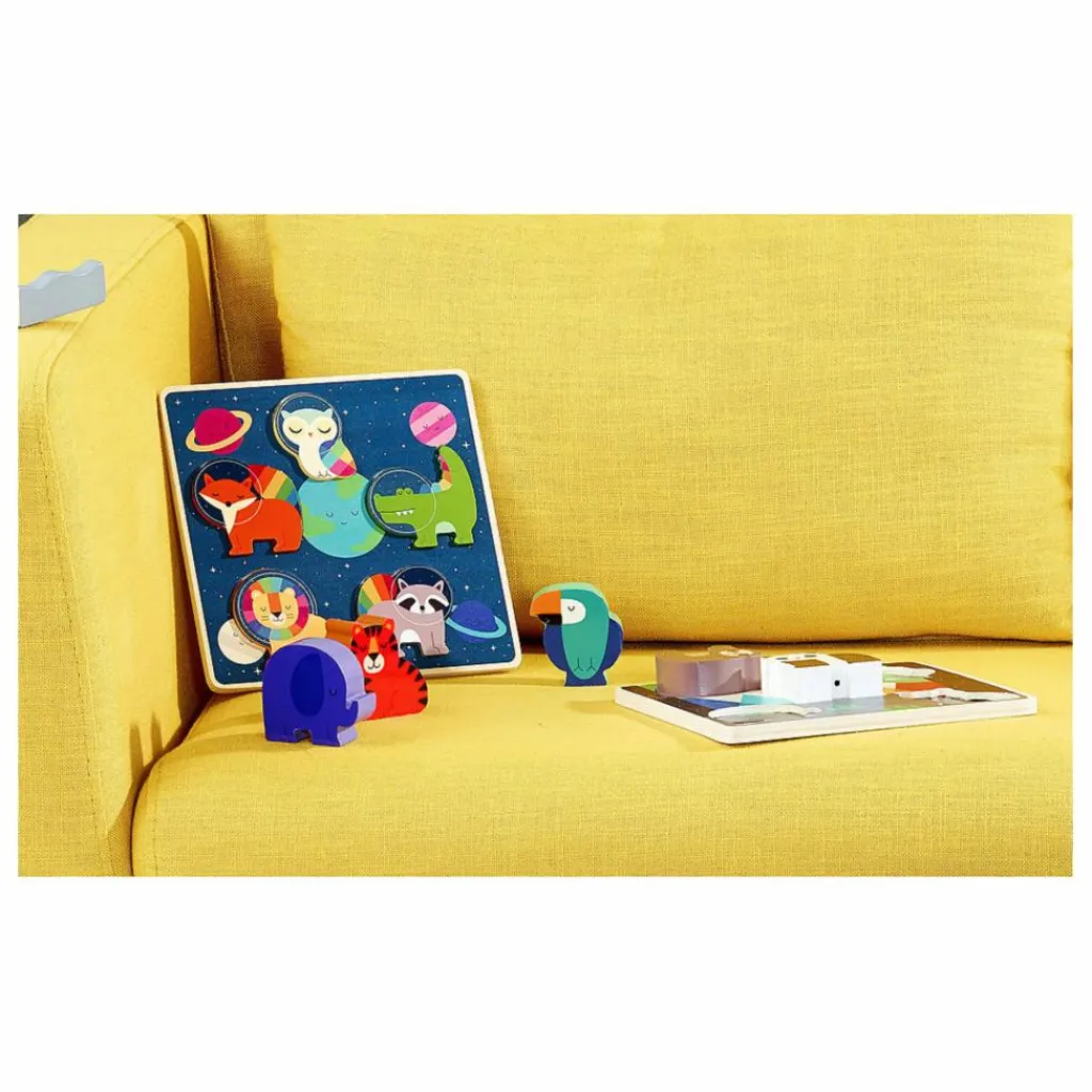 - Contient un socle imprimé sur le dessus, 5 textures différentes dans les emplacements, et 5 pièces en forme d’animaux.