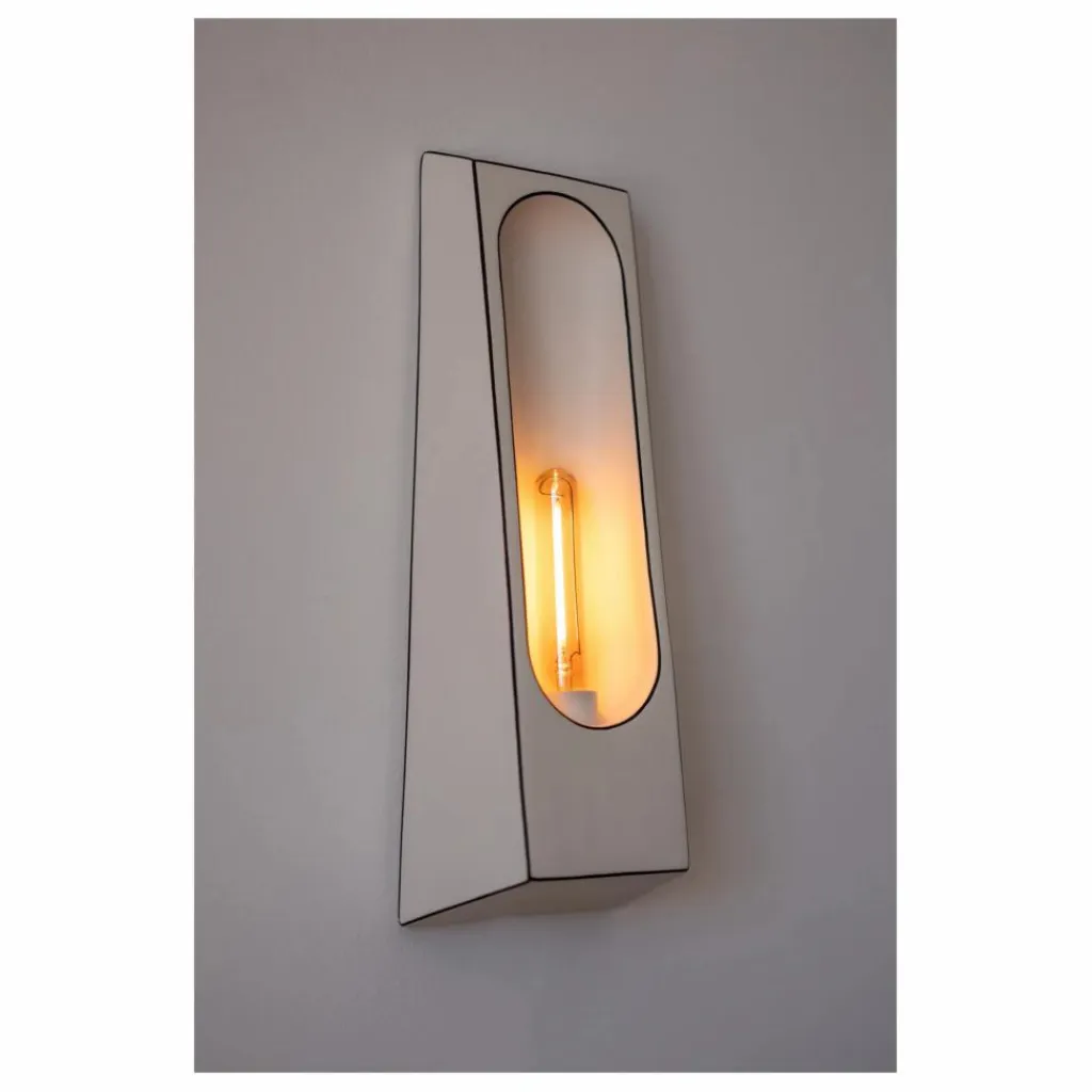 Cette applique murale est inspirée de l’alcove architecturale. Une ampoule tubulaire est mise à l’honneur dans un écrin de couleur qui sublime la lumière, rappelant l’éclairage à la bougie.