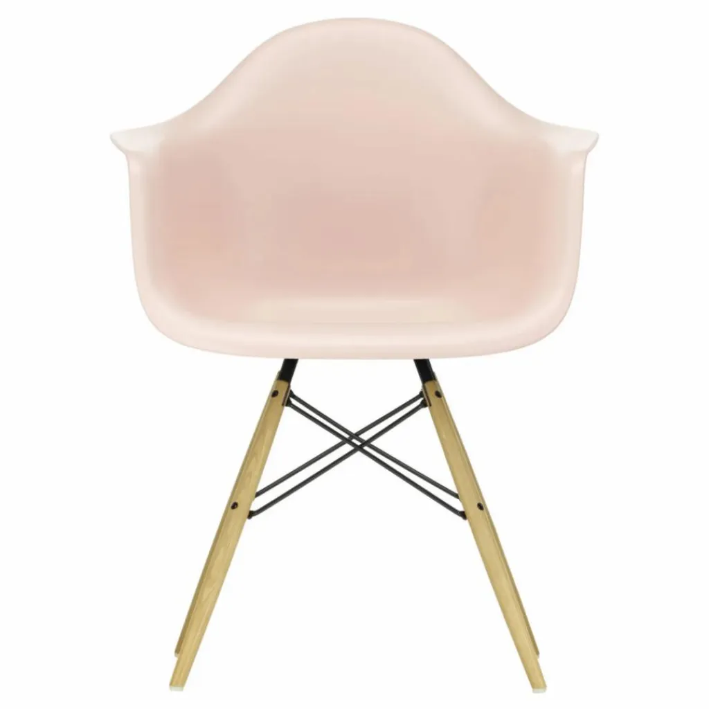 La chaise DAW (Dining Height Armchair Wood Base), conçue par Charles et Ray Eames, est un exemple emblématique d’un siège dont la coque peut être associée à différents types de piètements. Son piètement en bois crée un contraste intéressant avec la coque en plastique recyclé post-consommation. Cette combinaison de matériaux offre non seulement un aspect visuel attrayant, mais elle contribue également à la durabilité de la chaise en utilisant des matériaux recyclés.
