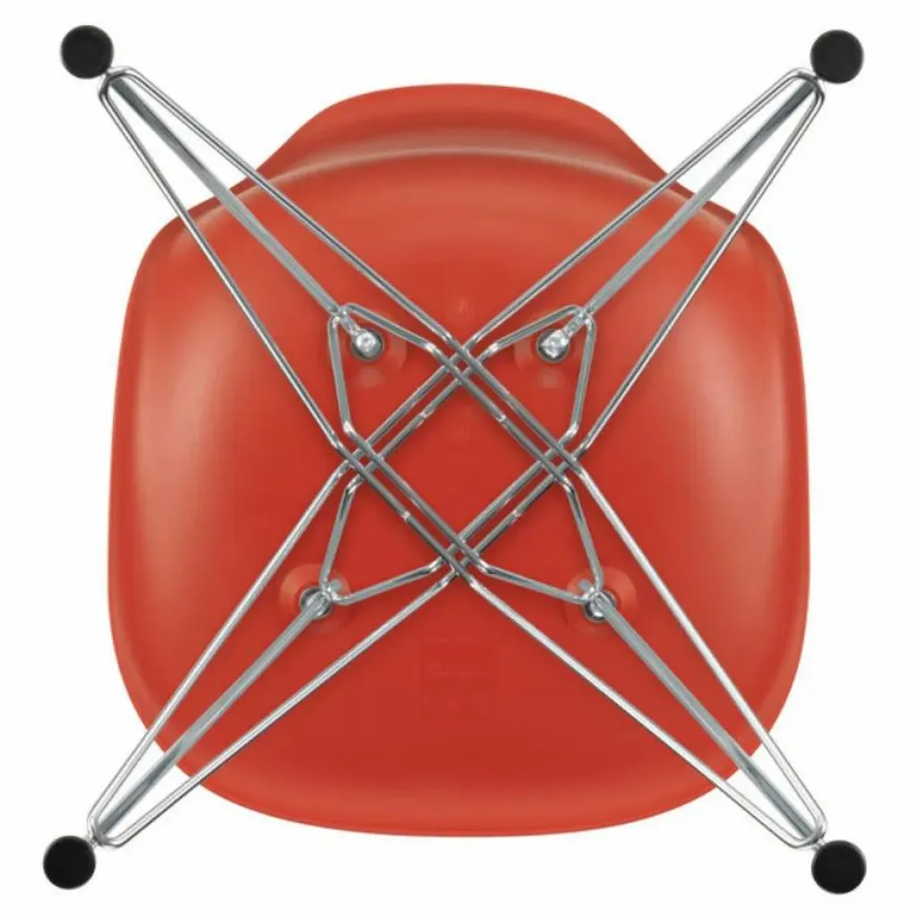 La chaise DSR (Dining Height Side Chair Rod Base) est réputée pour son piètement de type « tour Eiffel », une caractéristique emblématique qui allie élégance, légèreté et rigueur structurelle. Ce piètement, fabriqué en fil d’acier, est une construction complexe et gracieuse qui confère à la chaise un caractère distinctif tout en assurant sa fonctionnalité. Inspiré par l’architecture iconique de la tour Eiffel, ce design moderne offre à la fois une esthétique contemporaine et une solidité remarquable, ce qui en fait un choix prisé dans de nombreux espaces contemporains.