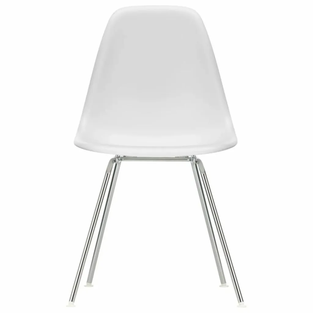 Avec son piètement à quatre pieds en tube d’acier, la DSX (Dining Height Side Chair X-Base) est la version la plus sobre du siège en plastique classique de Charles et Ray Eames. Le coussin d’assise disponible en option permet d’améliorer encore son confort.