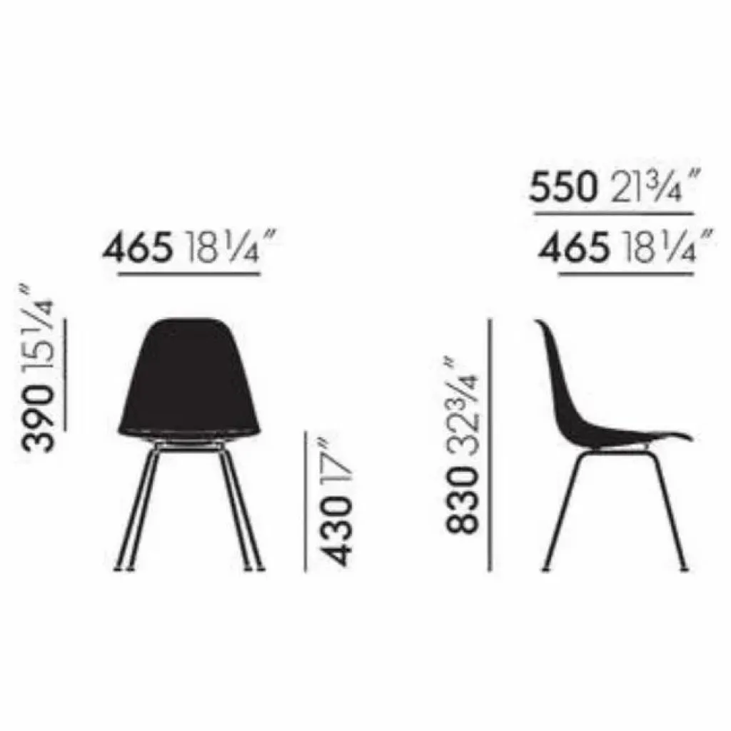 Piètement : Piètement à quatre pieds en tube d’acier, non empilable. (DSX = Dining Height Side Chair X-Base)