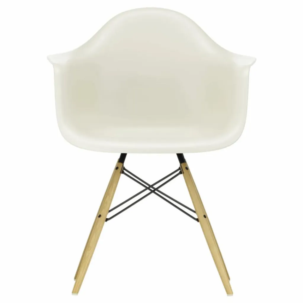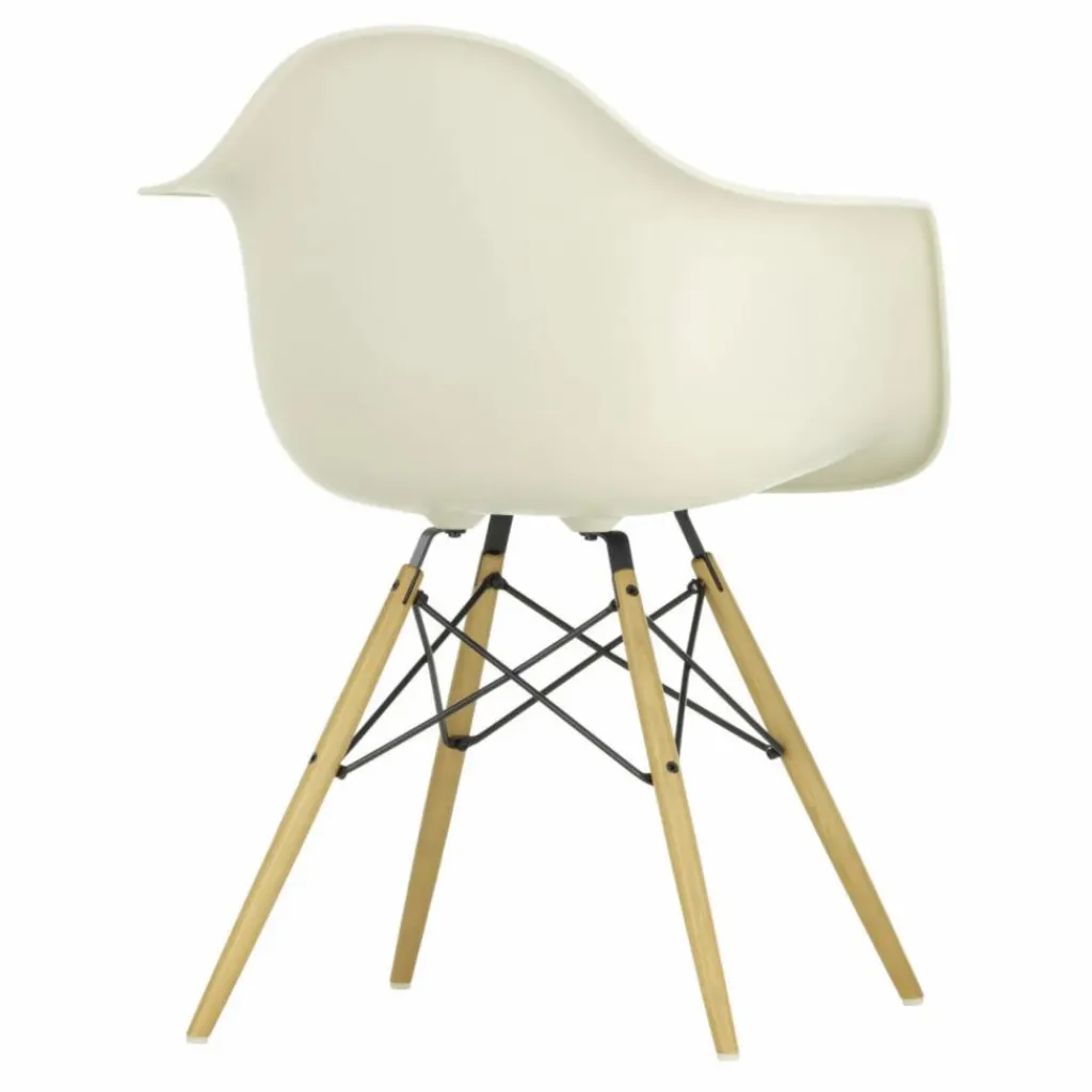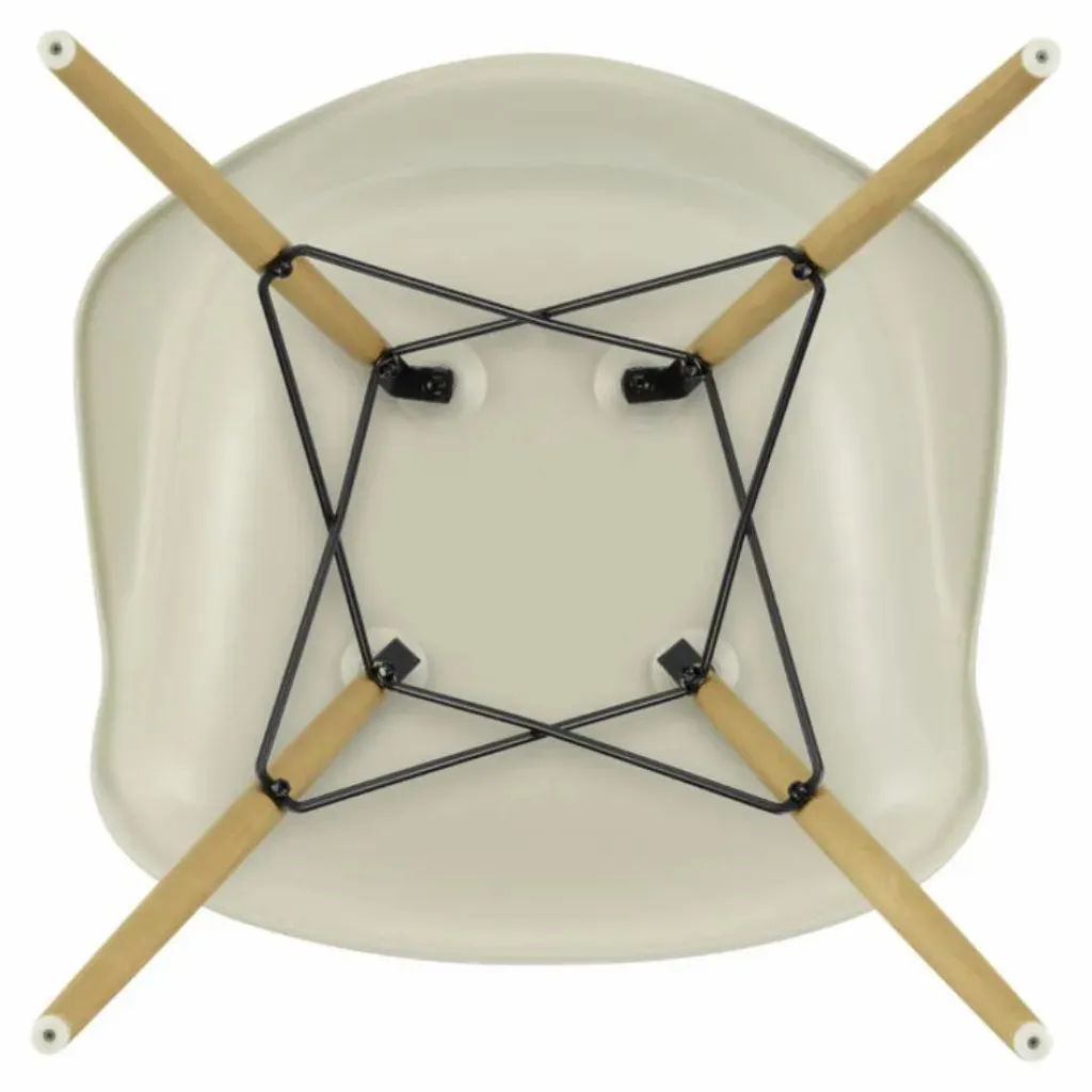 La chaise DAW (Dining Height Armchair Wood Base), conçue par Charles et Ray Eames, est un exemple emblématique d’un siège dont la coque peut être associée à différents types de piètements. Son piètement en bois crée un contraste intéressant avec la coque en plastique recyclé post-consommation. Cette combinaison de matériaux offre non seulement un aspect visuel attrayant, mais elle contribue également à la durabilité de la chaise en utilisant des matériaux recyclés.
