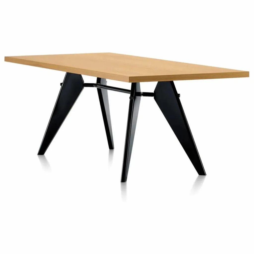 L’aspect esthétique de la table EM de Jean Prouvé respecte les principes structurels, illustrant le flux des forces et des contraintes dans sa construction. Elle est disponible en plusieurs tailles avec des plateaux en bois massif de première qualité ou en stratifié HPL dans un choix de couleurs. Les plateaux d’une longueur de 2000 ou 2400 mm sont également disponibles en placage de chêne. Grâce à ce vaste choix, il est possible de trouver la table EM idéale pour chaque salle à manger.