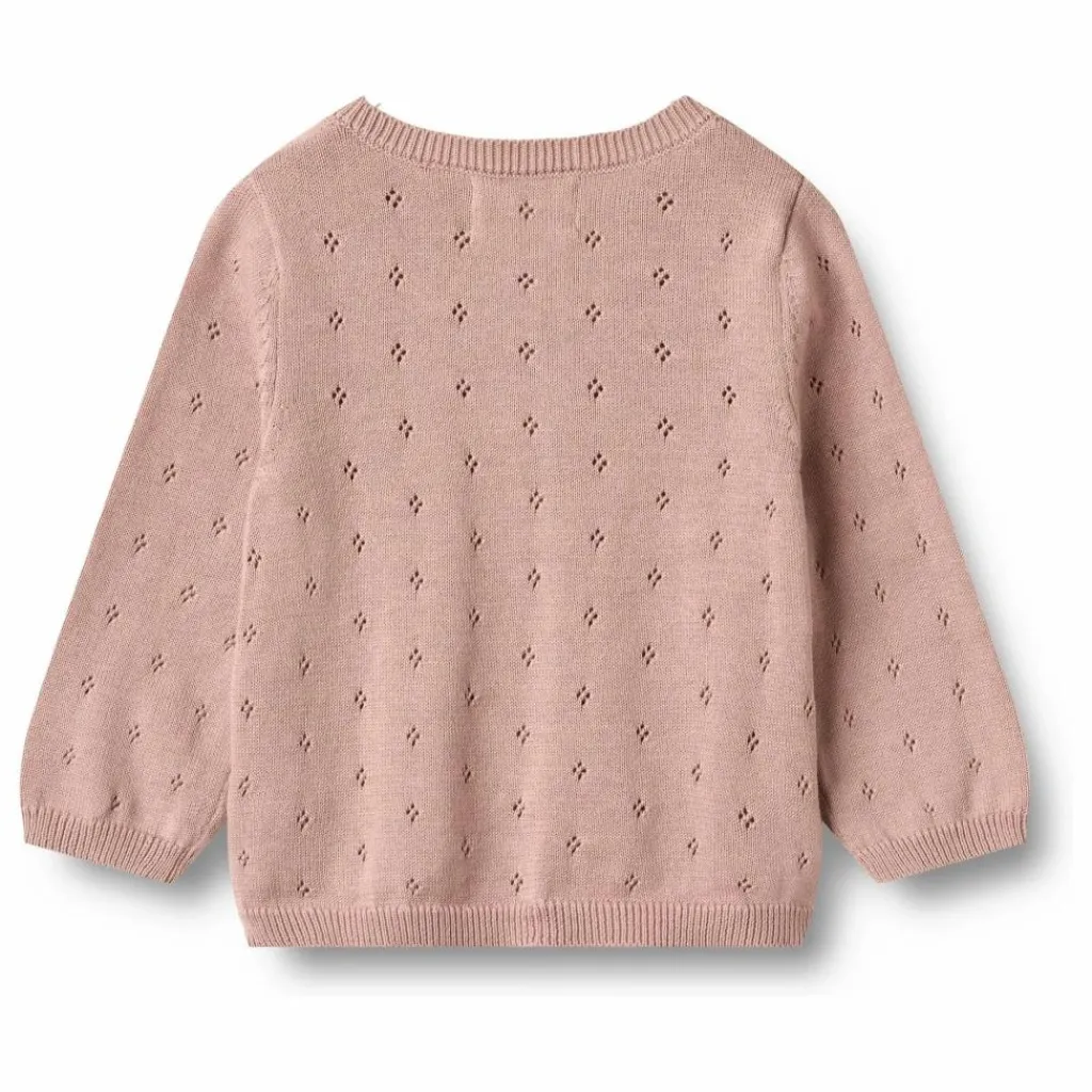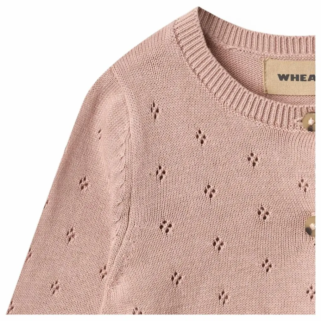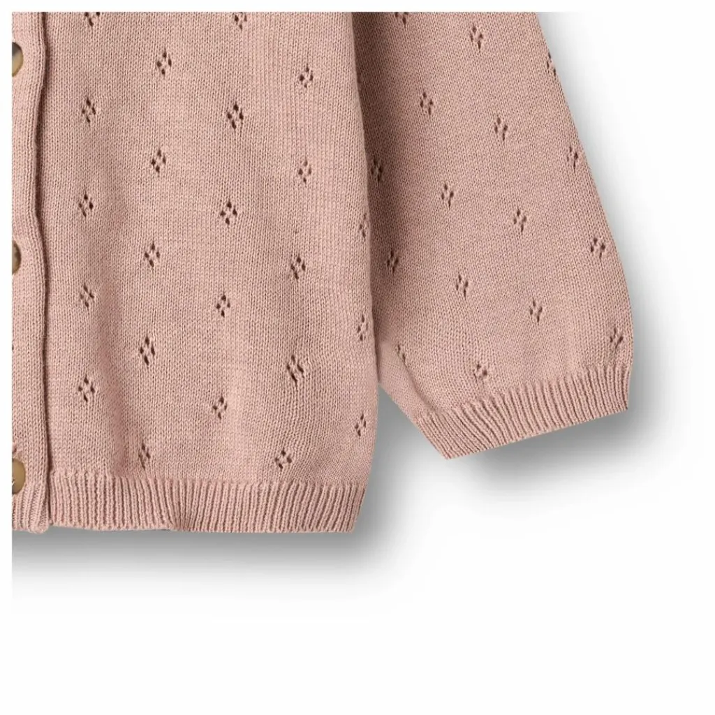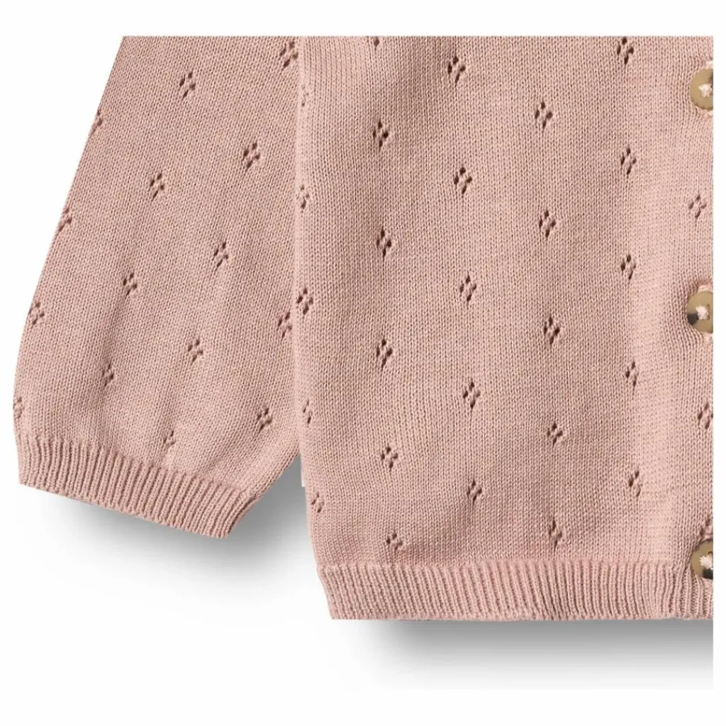 - – Légèrement en forme de A – Boutons sur le devant – Bord-côte à l’encolure, aux poignets et à l’ourlet du bas – Doux motif de dentelle