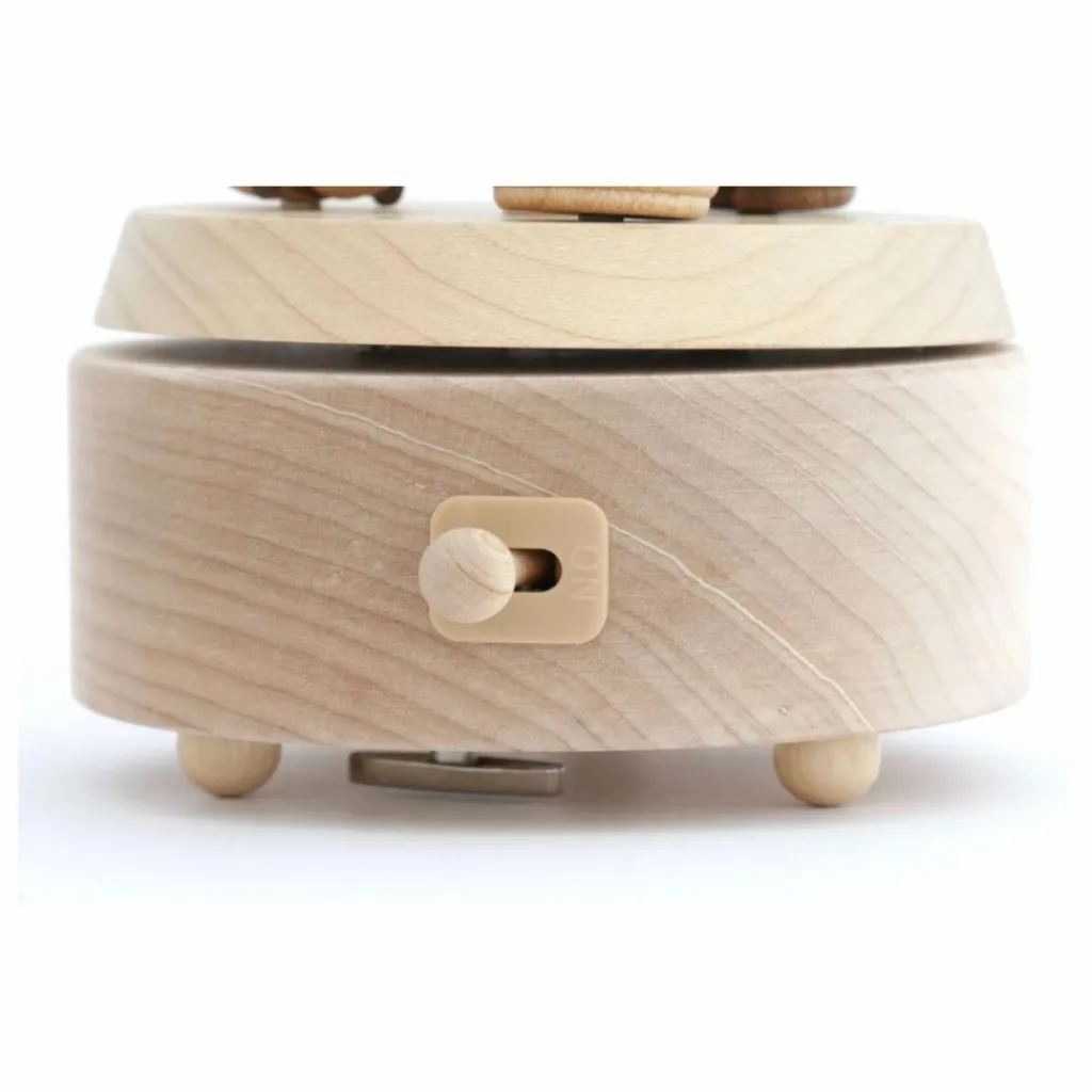 - Cette boite à musique est conçue dans la plus pure tradition artisanale et requièrent un travail d’orfèvre avec plus d’une centaine de manipulations minutieuses lors de leur fabrication. Elle se remonte manuellement et jouent pendant une centaine de secondes sa musique. cette mélodie mêlée au décor en mouvement de la boîte à musique en font un objet unique qui offre une émotion simple et universelle