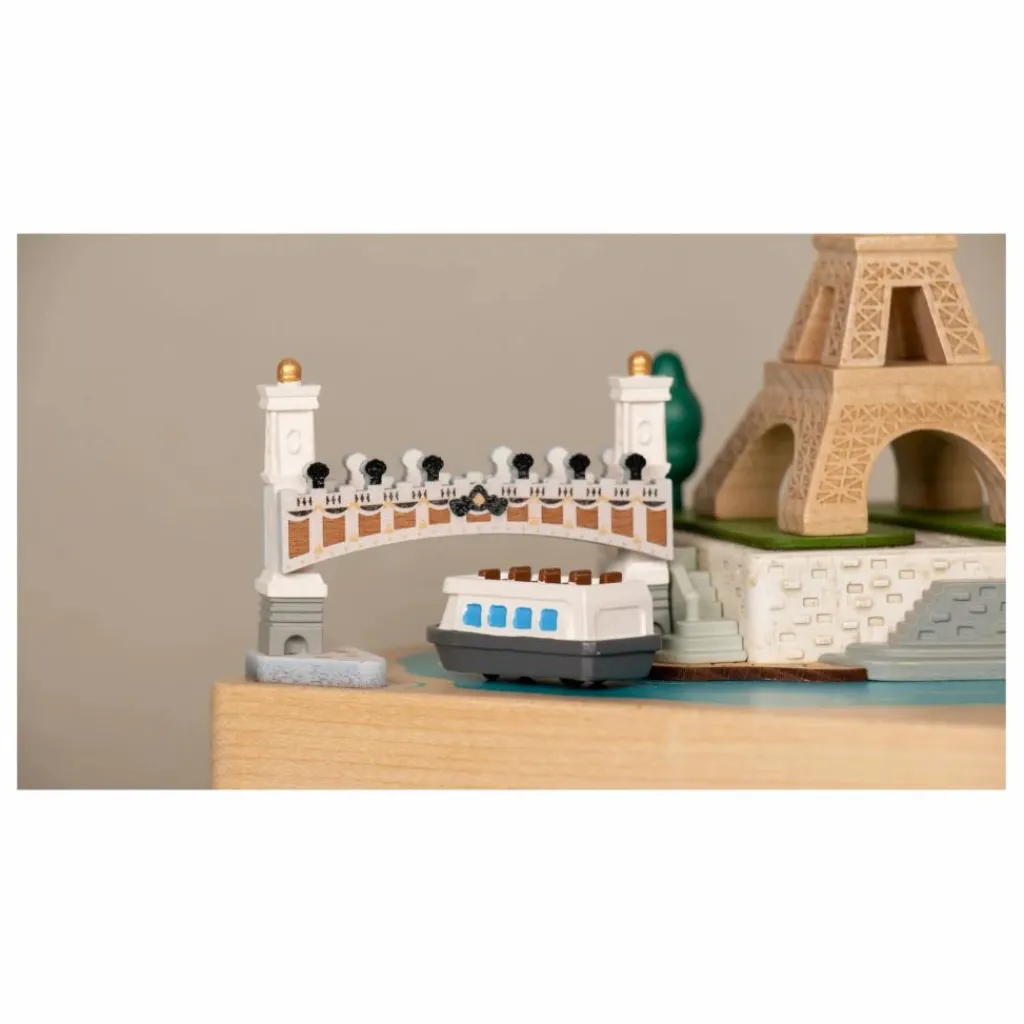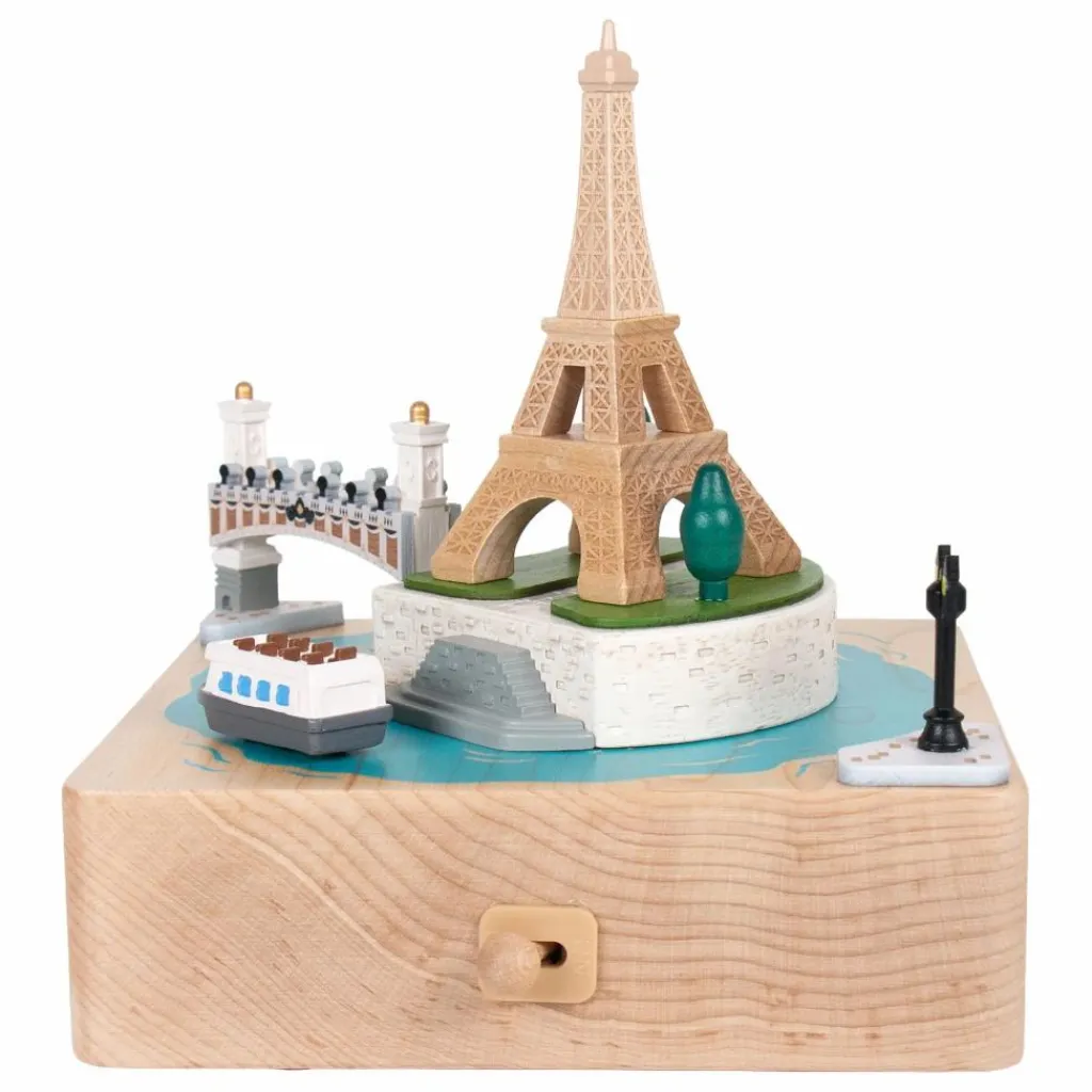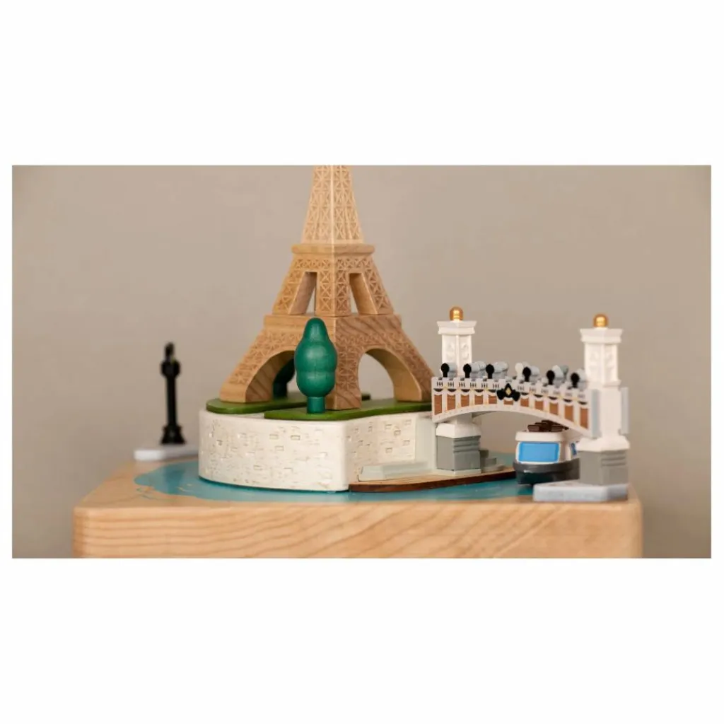- Cette boite à musique est conçue dans la plus pure tradition artisanale et requièrent un travail d’orfèvre avec plus d’une centaine de manipulations minutieuses lors de leur fabrication. Elle se remonte manuellement et jouent pendant une centaine de secondes sa musique. cette mélodie mêlée au décor en mouvement de la boîte à musique en font un objet unique qui offre une émotion simple et universelle