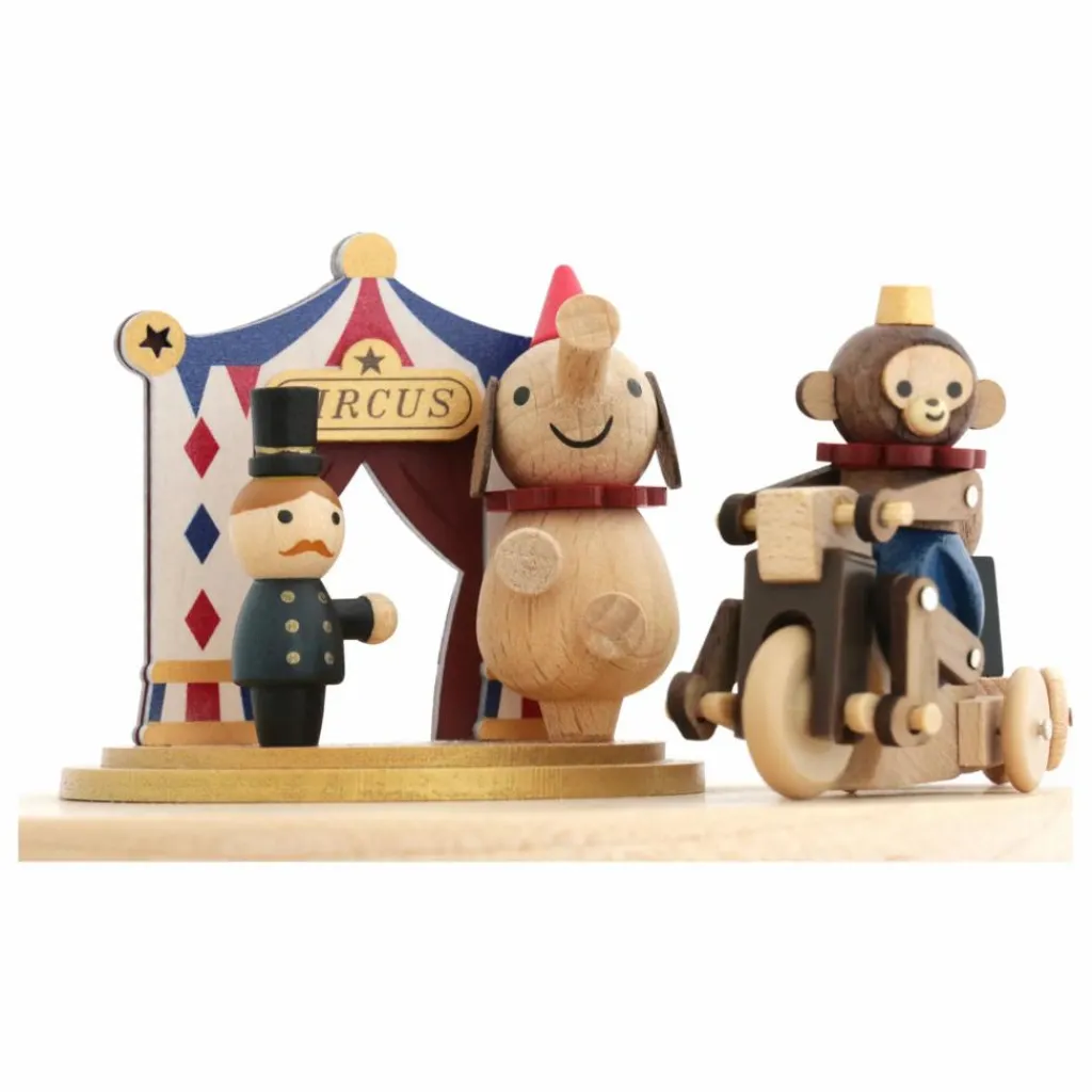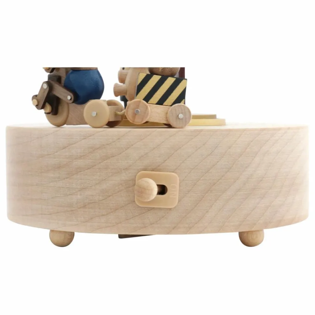 Cette boîte à musique a entièrement été réalisée en bois issu de forêts durables d’Europe, des États-Unis, du Canada et de Nouvelle Zélande. Le mouvement, créé à la main, est hérité du savoir-faire ancestral d’une manufacture japonaise. À remonter manuellement, elle joue une mélodie pendant une centaine de secondes, et livre le spectacle de son décor en mouvement.