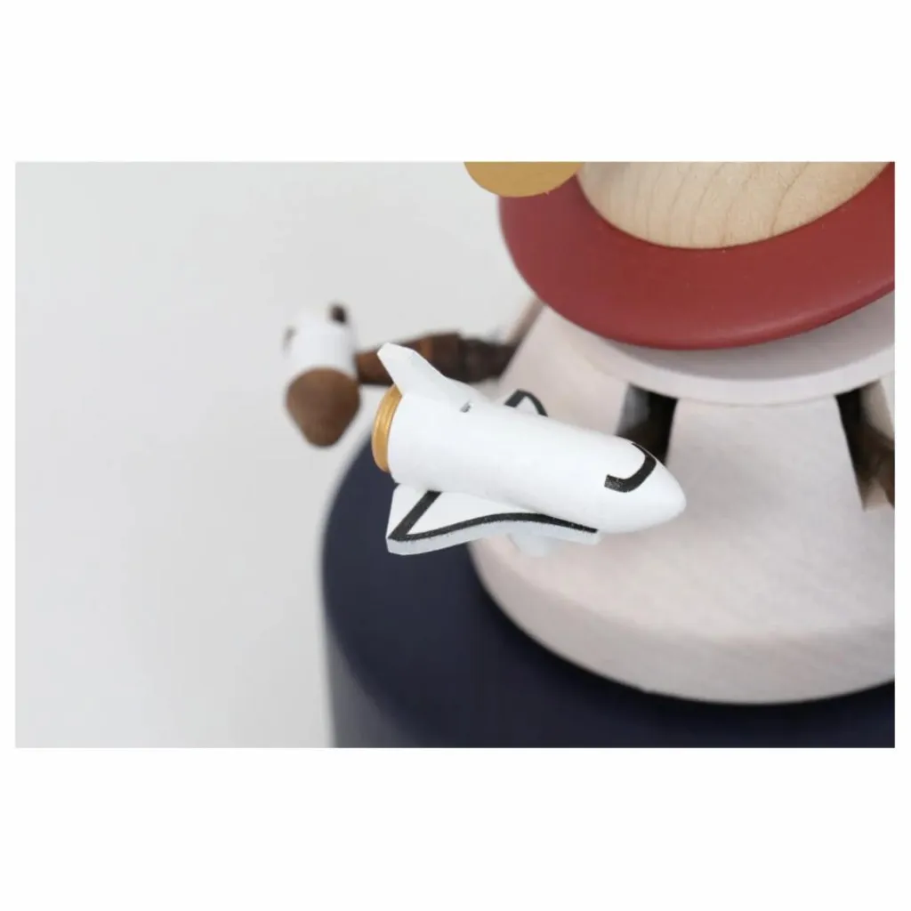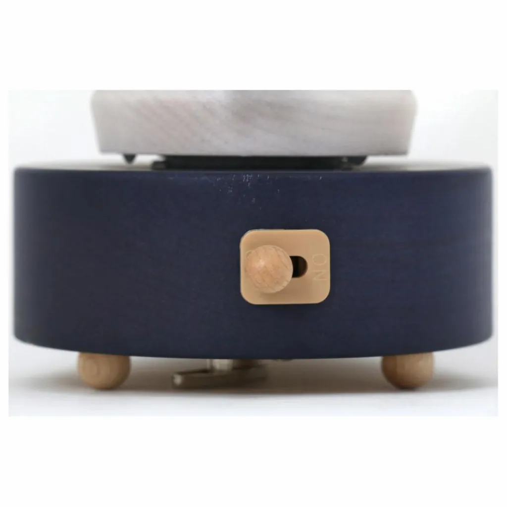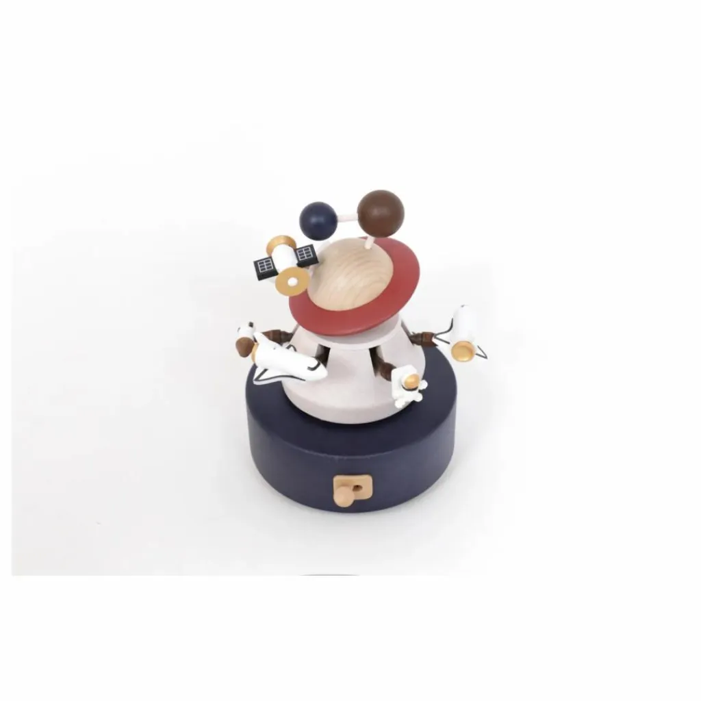 Cette boîte à musique a entièrement été réalisée en bois issu de forêts durables d’Europe, des États-Unis, du Canada et de Nouvelle Zélande. Le mouvement, créé à la main, est hérité du savoir-faire ancestral d’une manufacture japonaise. À remonter manuellement, elle joue une mélodie pendant une centaine de secondes, et livre le spectacle de son décor en mouvement.