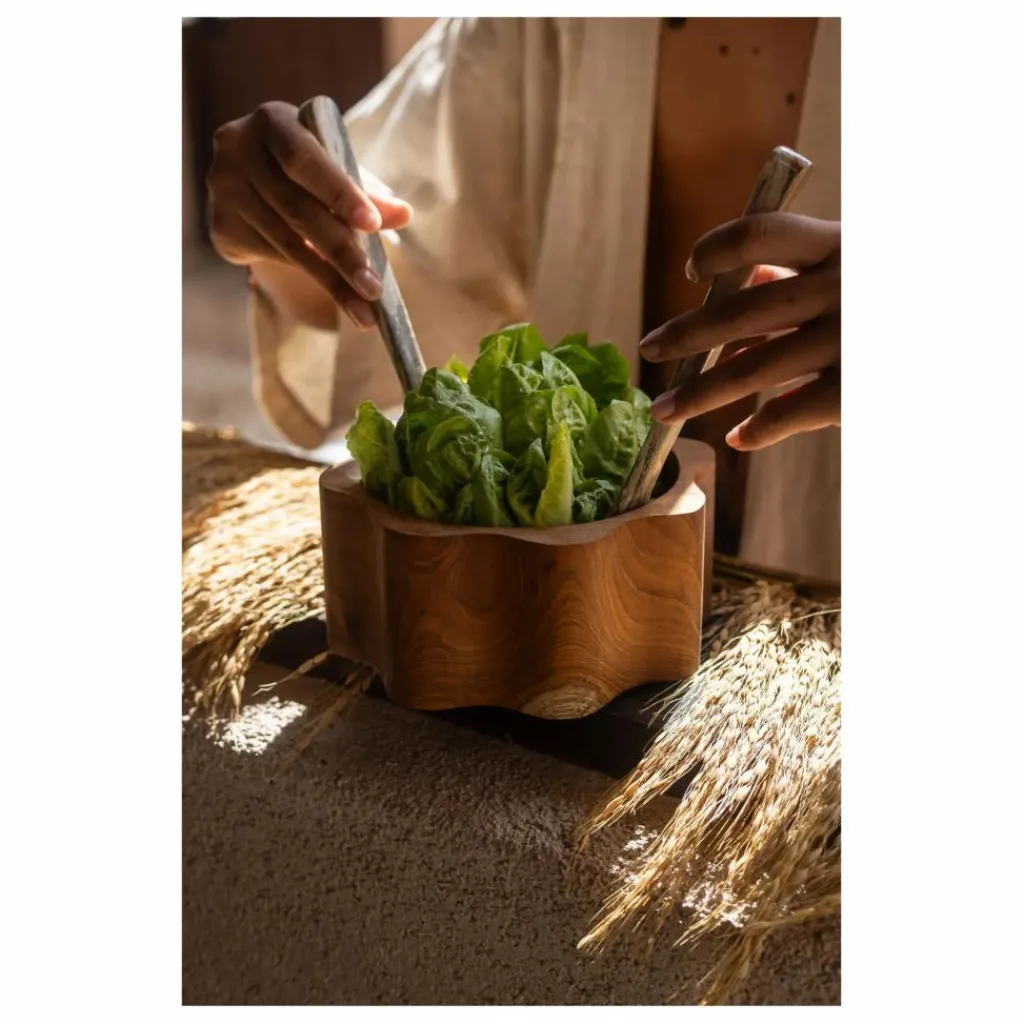 - Sublimez vos repas avec notre bol à salade en bois de teck, une pièce élégante et pratique qui apporte une touche naturelle à votre table. Conçu pour les amateurs de salades et de plats frais, ce bol combine beauté, durabilité et fonctionnalité.