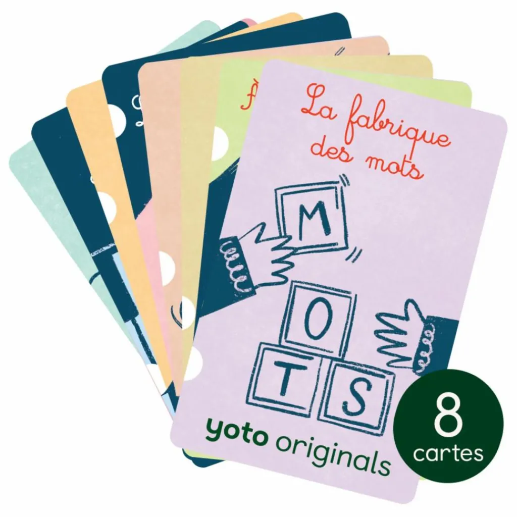 La fabrique des mots – Votre enfant arrive au bout du chemin. Cette dernière carte lui permet d’apprendre à décoder des mots simples comme « moto » ou « fil ». Comprendre comment sont construits les mots est l’une des dernières étapes dans l’apprentissage de la lecture et de l’écriture. C’est ensuite l’association des sons avec les lettres qui fera le reste et qui permettra à votre enfant de lire et d’écrire.