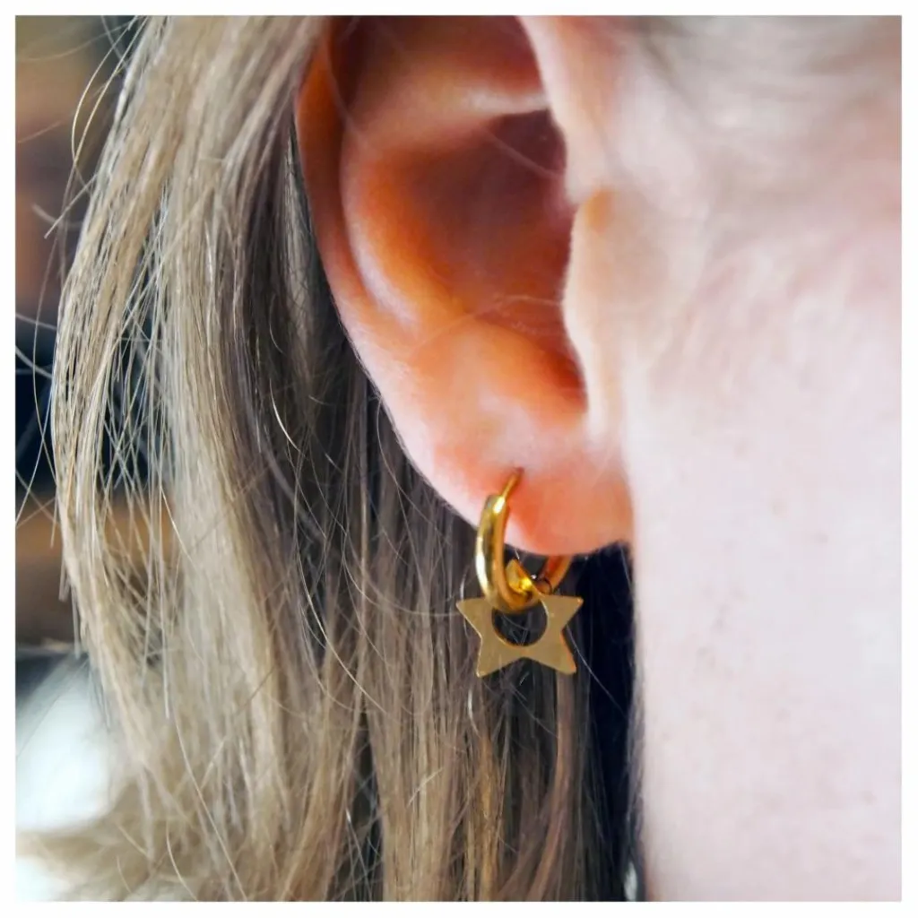 - Cette jolie paire de créoles épaisses avec ses pampilles Etoiles plaira aussi bien aux petites filles qu’à leur maman ! A la fois sobres et délicates, elles apportent la touche finale à nos tenues tout en faisant ressortir notre personnalité.