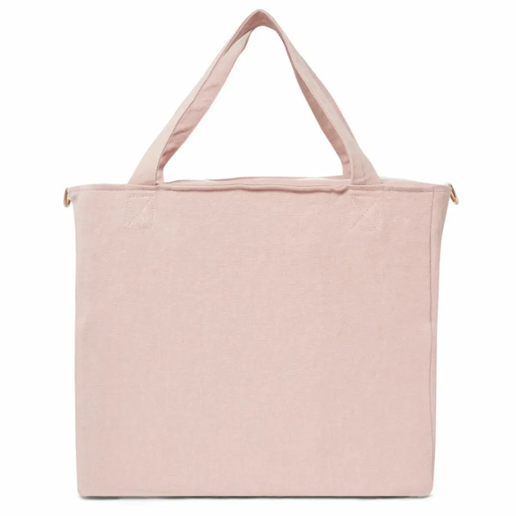Ce sac est doté de trois compartiments intérieurs pratiques : deux poches latérales élastiques et une poche principale spacieuse. Vous pourrez y ranger aisément des articles tels que des couches, un biberon, une gourde, des clés, un porte-monnaie, un téléphone, du gel hydroalcoolique, des lunettes de soleil, du rouge à lèvres, etc. De plus, il peut être porté à l’épaule, à la main ou fixé à une poussette grâce à des anses ultrarésistantes renforcées par des croisillons.