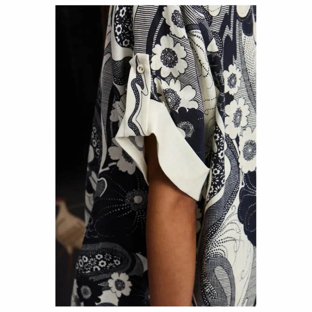 - Col et pied de col pointus Ourlet de manche retroussé avec pattes de serrage Patte de boutonnage dissimulée avec boutons auto-couverts