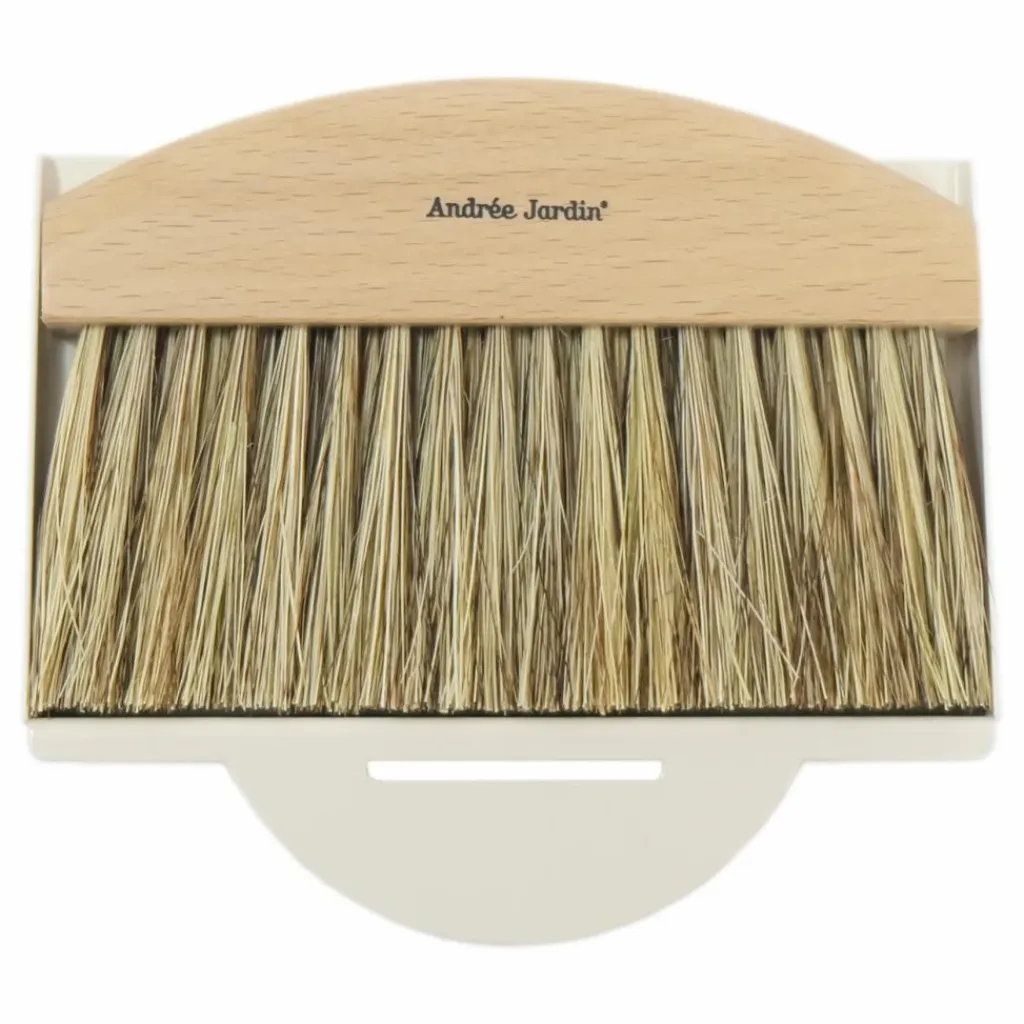 - Ramasse miettes et brosse en bois de hêtre vernis issu de forêts françaises gérées durablement, ramasse miettes en acier thermolaqué, brosse composée d’un mélange de crin de cheval naturel et de fibres végétales tampico