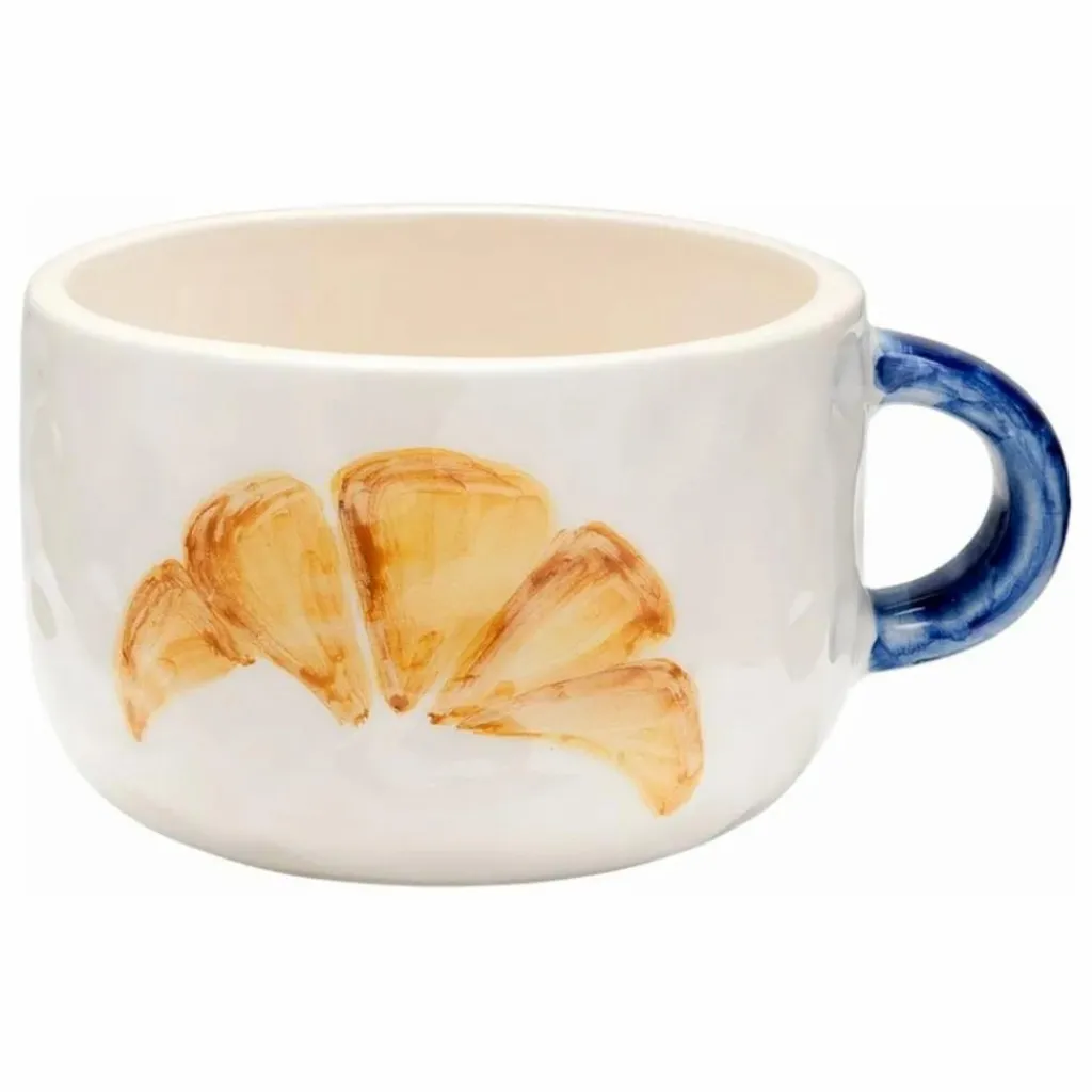 - La tasse Croissant Cappuccino est la tasse à café idéale pour commencer la journée. Illuminez votre matinée avec cet objet magnifiquement peint à la main. Combinez cette tasse avec d’autres objets de la collection pour un résultat parfait ! Spécifications : – Dimensions : 10 x 14 x 6,5 cm – Matériau : Céramique – Passe au lave-vaisselle et au micro-ondes – Peint à la main – Fabriqué au Portugal