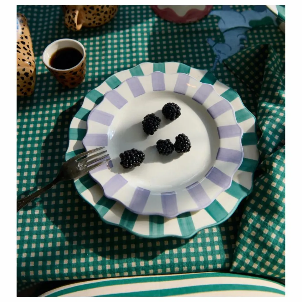 - L’assiette à dîner festonnée en pin a un design éblouissant qui illumine sans effort votre table. Les magnifiques rayures vert pin peintes à la main autour du cercle extérieur de l’assiette sculptée rendent l’objet amusant et extraordinaire. Associez-la aux autres assiettes festonnées et apportez vos idées colorées et inspirantes à la table.
