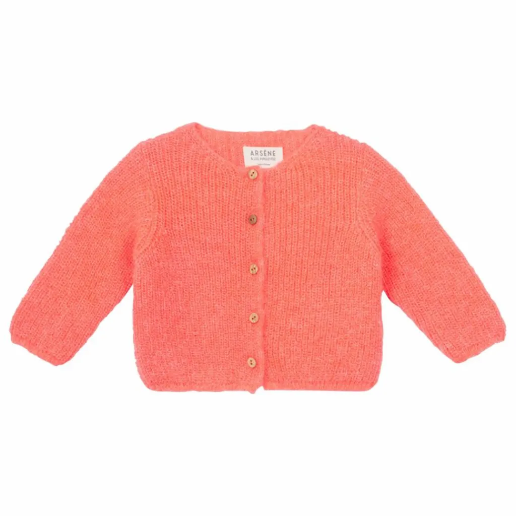 - Cardigan bebe tricot . – Cote perlee contenant de la laine pour plus de chaleur. – Col rond, manches longues. – Ouverture boutonnee au milieu devant. – Existe en coloris rose fluo et parme. – H25BK06
