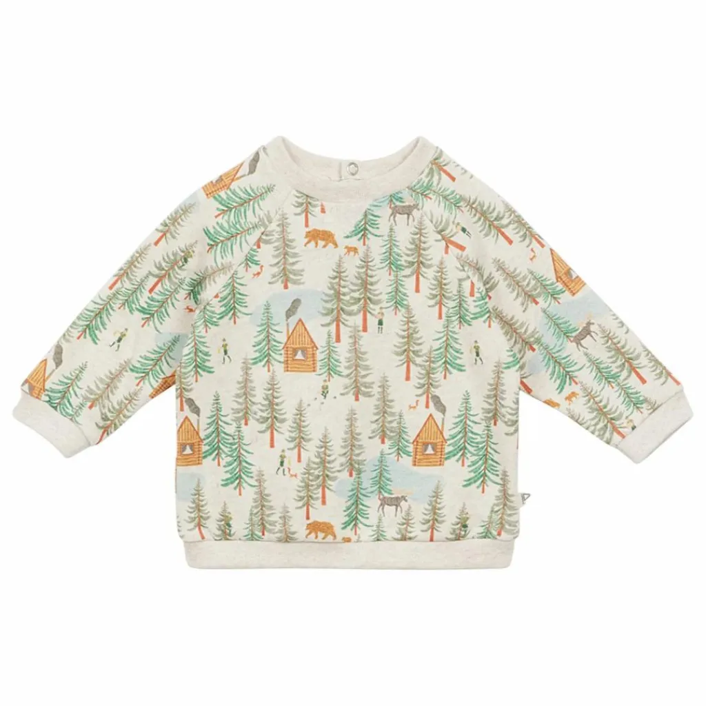 - Sweat bebe relax imprime exclusif foret. – Molleton imprime en coton bio et emerise. – Col rond avec detail « V ». – Manches raglans. – Finition bord cote aux poignets et bas du corps. – etiquette petit drapeau cousue a la couture cote. – H25BS38