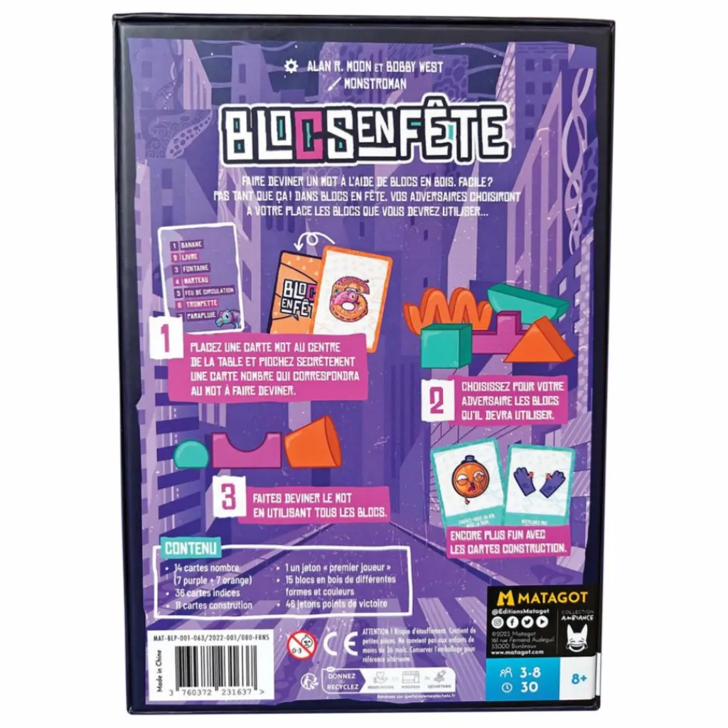 Amusez-vous à rendre le jeu de votre adversaire difficile avec ce super jeu Blocs en fête. Faites deviner un mot aux autres joueurs en utilisant des pièces en bois choisies par vos adversaires.