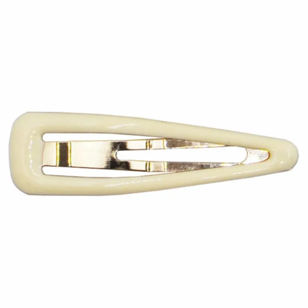 Les barrettes clic clac Bachca sont idéales pour fixer les petites mèches rebelles.En doré et ivoire, c’est le détail chic de toutes les coiffures.