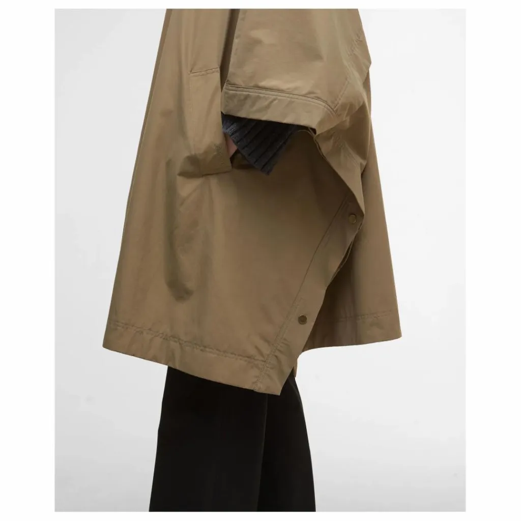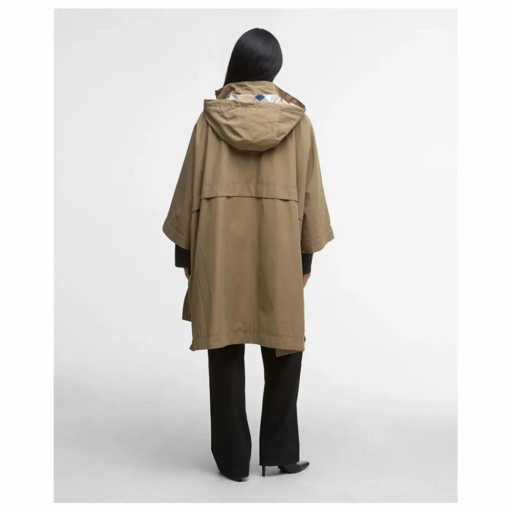 - Une nouvelle cape imperméable pour la pluie. Avec capuche fixe et col cheminée, manches cape à boutons-pression, grandes poches passepoilées et faux empiècement au dos. Détail Tartant à l’intérieur de la capuche.