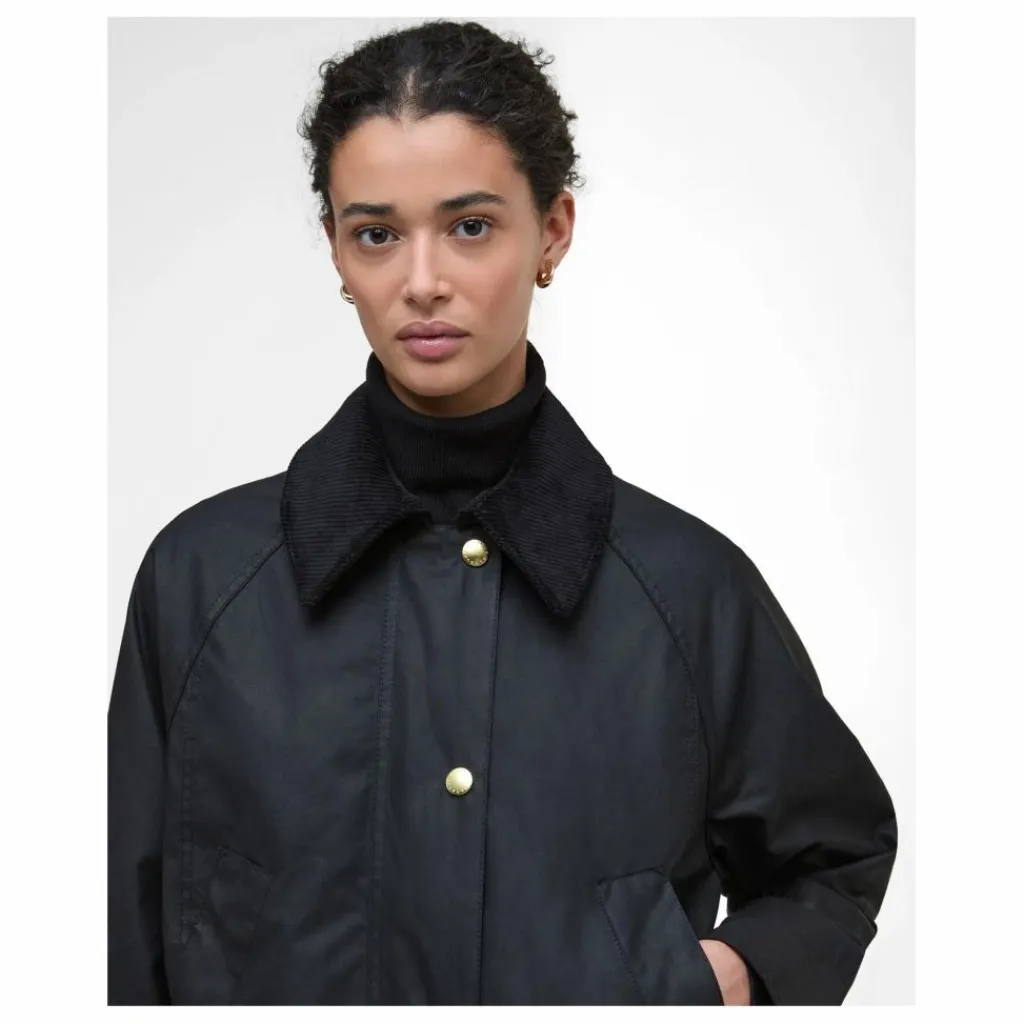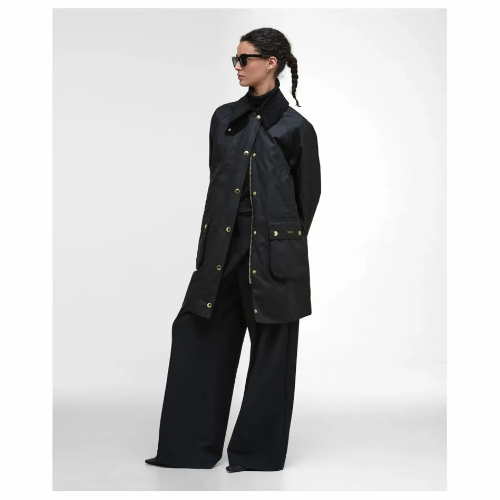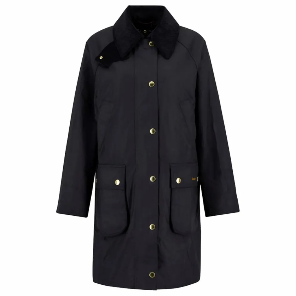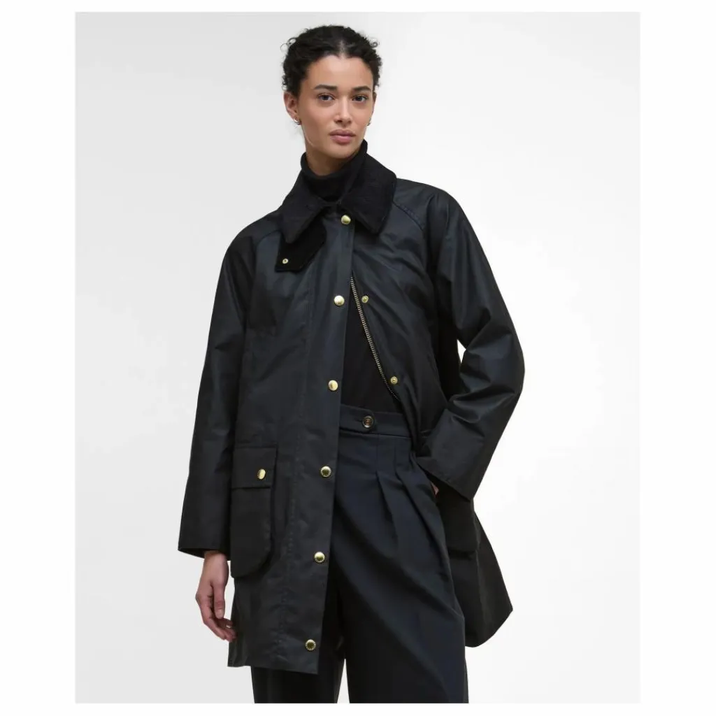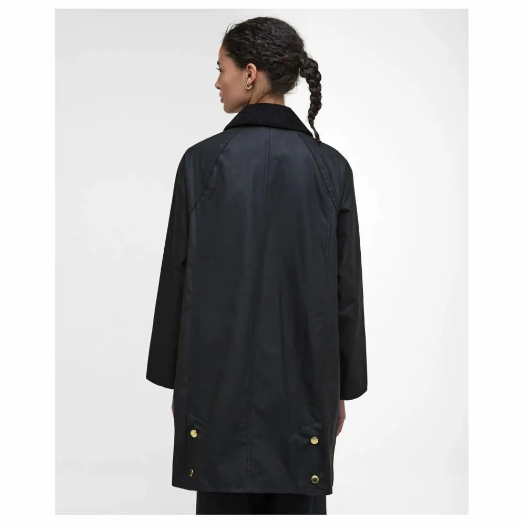 - Veste longue en coton ciré, coupe trapèze décontractée. Poches passepoilées traditionnelles et poches chauffe-mains sur la poitrine. Doubles fentes cloutées au dos. Patte de boutonnage à pressions et fermeture zip. Col en velours côtelé et doublure en tartan.