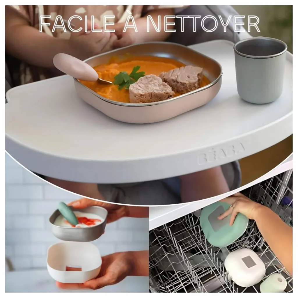 - Le Coffret Repas Inox Béaba® est conçu pour répondre aux besoins des plus jeunes tout en offrant une solution durable et saine. Complet, il comprend une assiette, un bol et un petit verre ergonomiques.