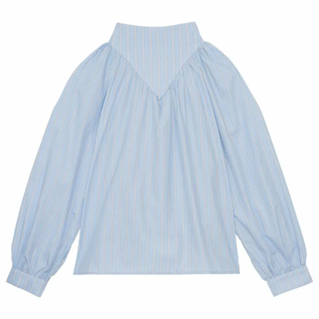 - Blouse manches longues en coton à rayures. Col montant avec détail découpe en V. Coupe décontractée légèrement évasée