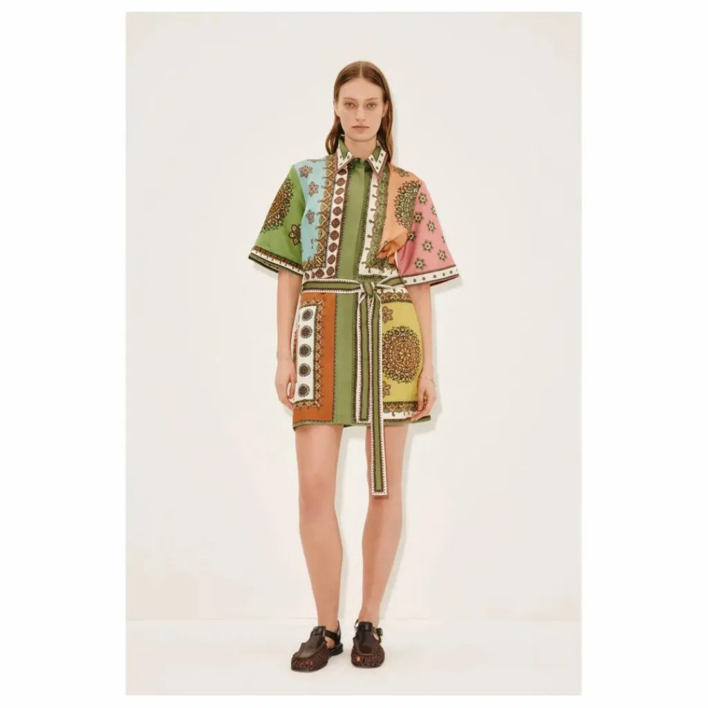 - – Silhouette droite de mini-robe-chemise – Col et pied en pointe – Manches courtes – Patte de boutonnage dissimulée avec boutons recouverts – Poches dans la couture – Ceinture à nouer – Se référer aux photos du produit à plat pour une représentation fidèle des couleurs du produit.