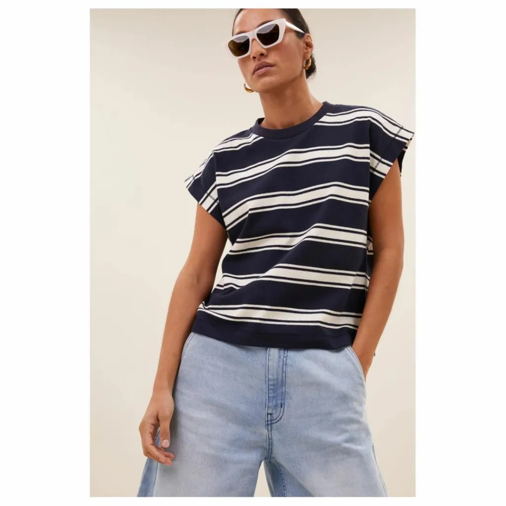 Le mason stripe top, un incontournable de votre garde-robe ! Ce shirt sans manches élégant est fabriqué dans une belle qualité de coton. Son design à rayures le rend parfait pour toutes les occasions. La top offre une combinaison d’élégance et de confort, vous permettant de créer facilement un look sophistiqué. Profitez d’un style polyvalent et intemporel !