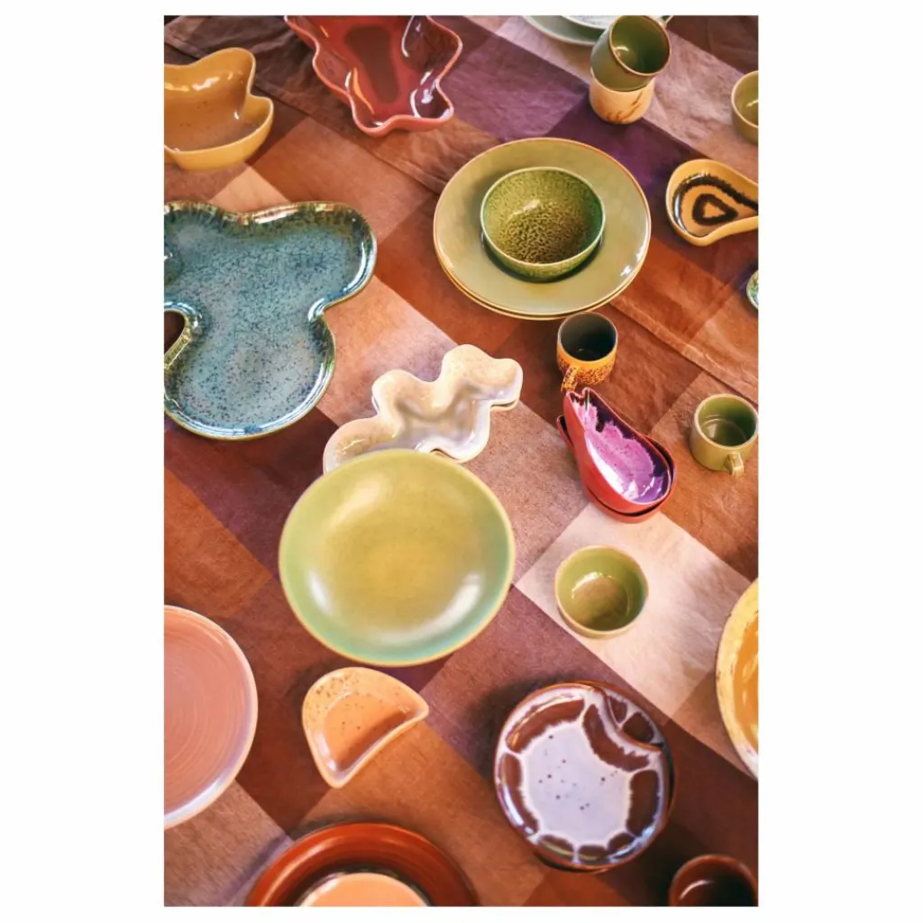 - La céramique des années 70 peut être inspirée par les passionnantes années 70 – cette fois, la finition a une base naturelle et rappelle les côtes brutes. Combinant des formes emblématiques avec des ajouts frais, la collection plaira à ceux qui apprécient la simplicité brute.