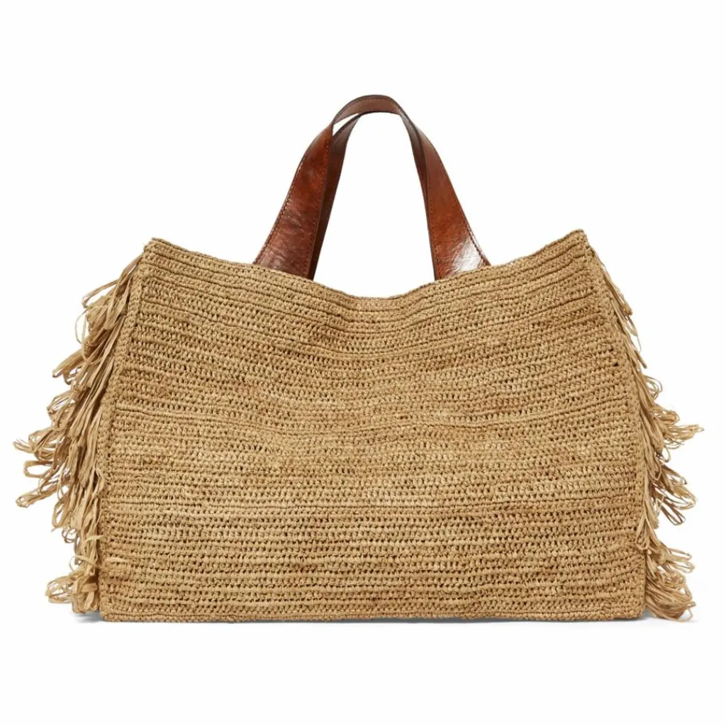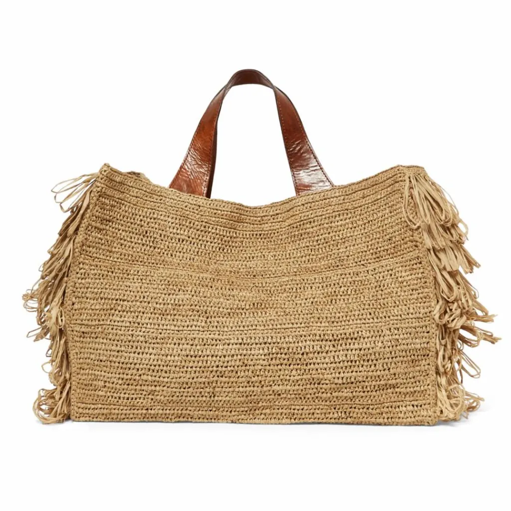 - Maille crochetée : 100% Raphia, Doublure : 100% Coton, Anses : 100% Cuir recyclé