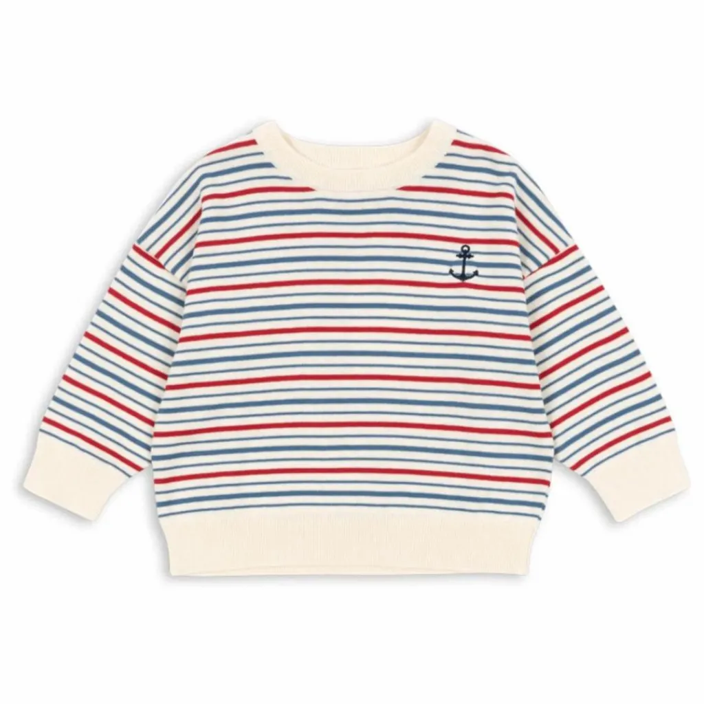 - Pull en tricot de coton léger de coupe classique avec un col rond et des épaules tombantes. 100% coton