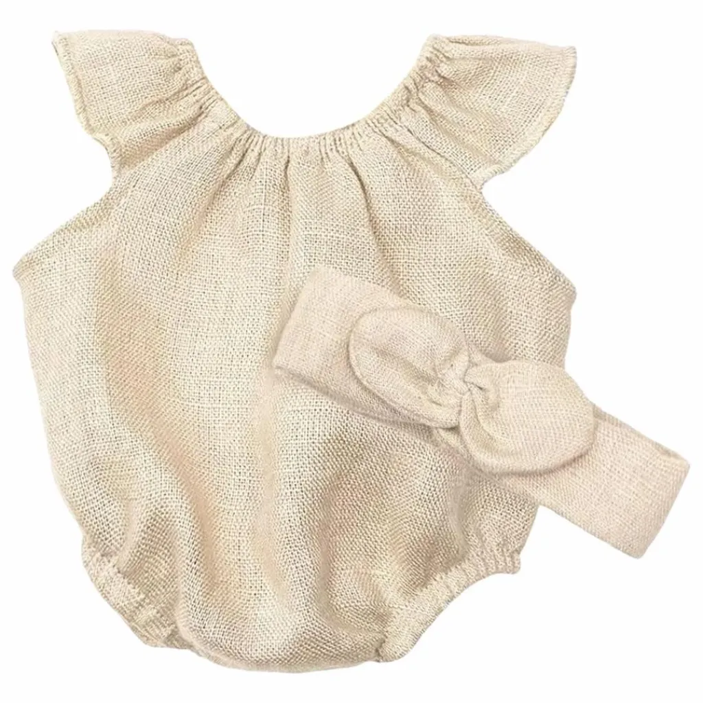 - Barboteuse Clara et son headband en lin pour poupées Minikane Gordis 34 & 37cm.