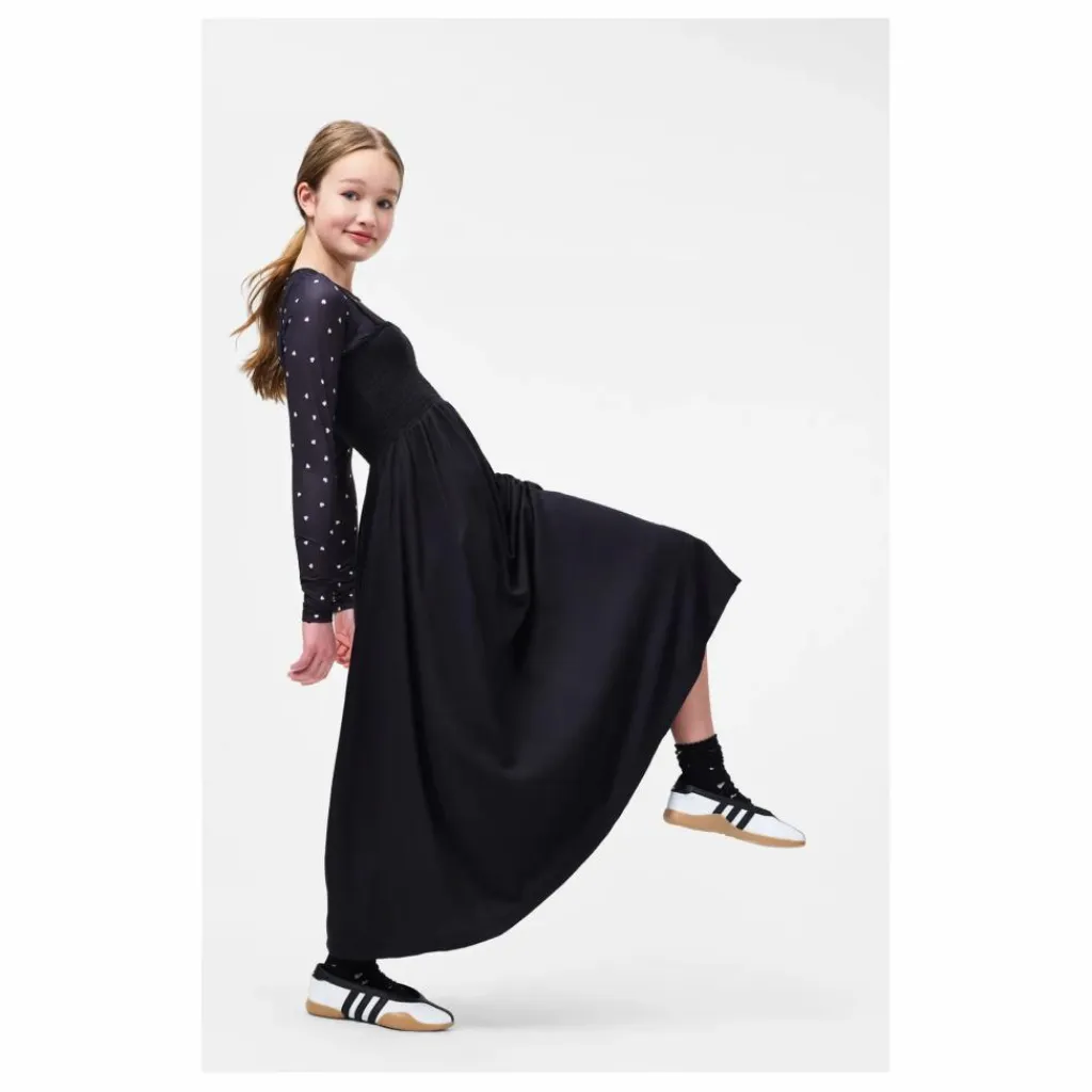 - Robe souple en viscose confortable, dotée d’étroites bretelles réglables. Le corsage à smocks assure une coupe flatteuse et un port confortable, tandis que la jupe coule doucement de la taille jusqu’à mi-mollet, présentant un style féminin sans effort. Idéale pour les journées chaudes, cette robe offre à la fois style et aisance de mouvement aux enfants actifs.