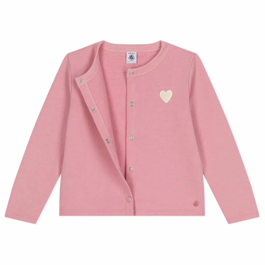 - Cardigan pour fille en molleton doux et confortable. Se ferme sur le devant par des boutons-pression estampillés. Encolure arrondie. Insigne en forme de coeur bouclé sur la poitrine.