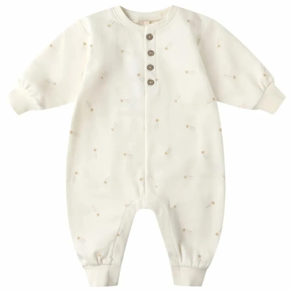 - Notre confortable combinaison en polaire décontractée, ornée de boutons en noix de coco et de bordures côtelées, est parfaite pour la garde-robe d’automne et d’hiver de votre enfant. Les boutons-pression au bas des tailles 0-3M à 18-24M permettent de les changer facilement. Les boutons-pression au bas des tailles 0-3M à 18-24M facilitent les changements. Avec notre imprimé « étoiles filantes » sur notre teinte « ivoire ».