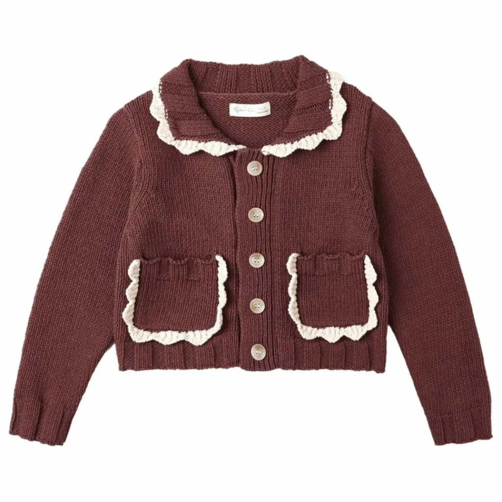 - Notre cardigan à col présente des détails contrastés en crochet sur les poches et le col pour plus de charme et de classe.