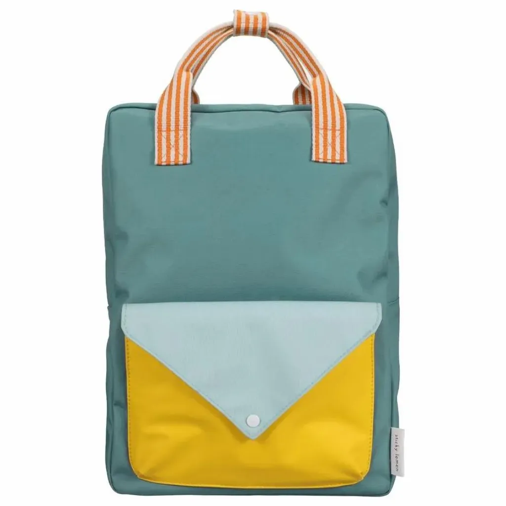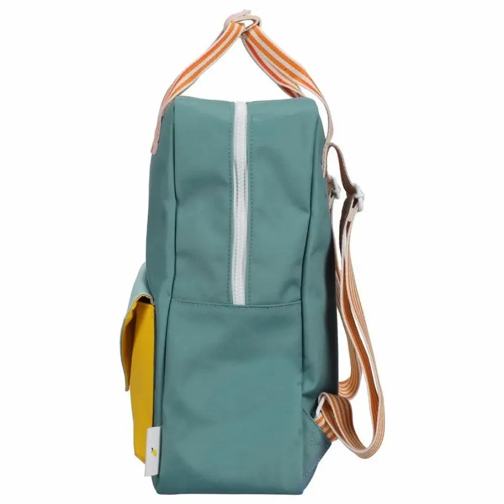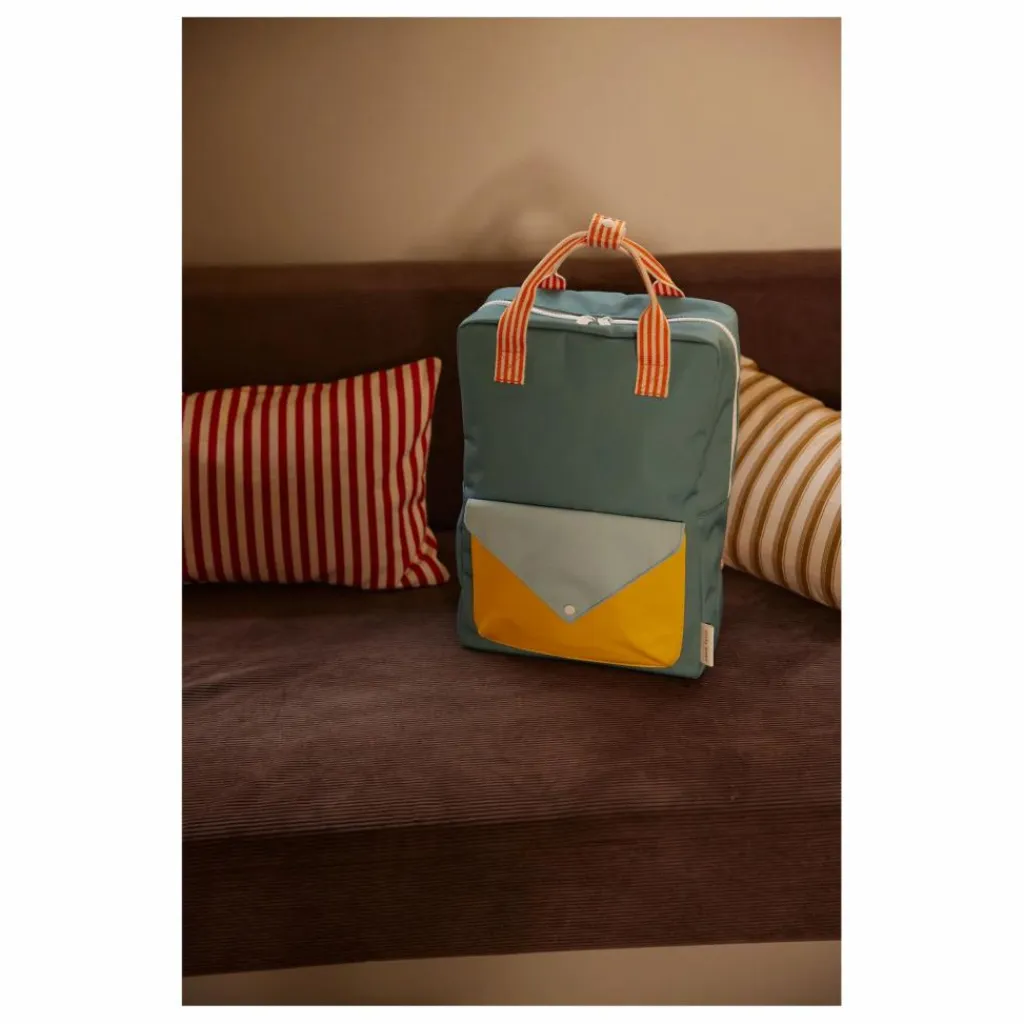 - Ce sac se distingue par son mélange de couleurs ! Il est doté d’une poche supplémentaire sur le devant, d’une doublure imperméable avec un motif dessiné à la main et de bretelles réglables. À l’intérieur, vous trouverez une bande élastique qui sert de porte-bouteille et une poche sur tout le dos qui se ferme à l’aide d’un velcro. Il y a aussi un badge pour mettre vos informations.