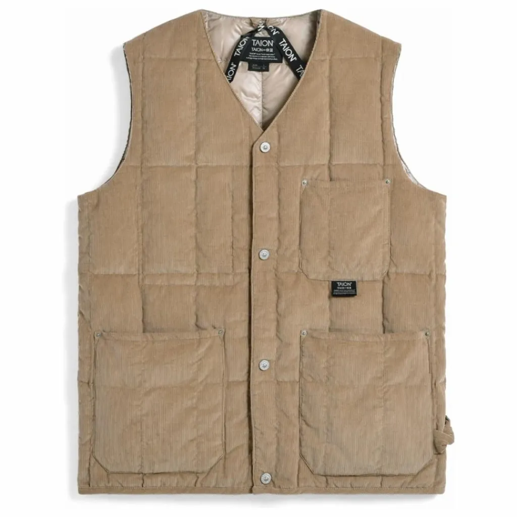 - Une veste sans manche en duvet chaude et résistante en velours côtelé.