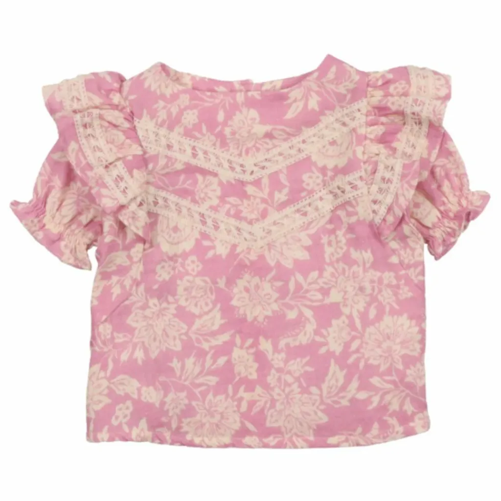 - Manches courtes bouffantes, Détails dentelle, Emmanchures volantées, Encolure ronde